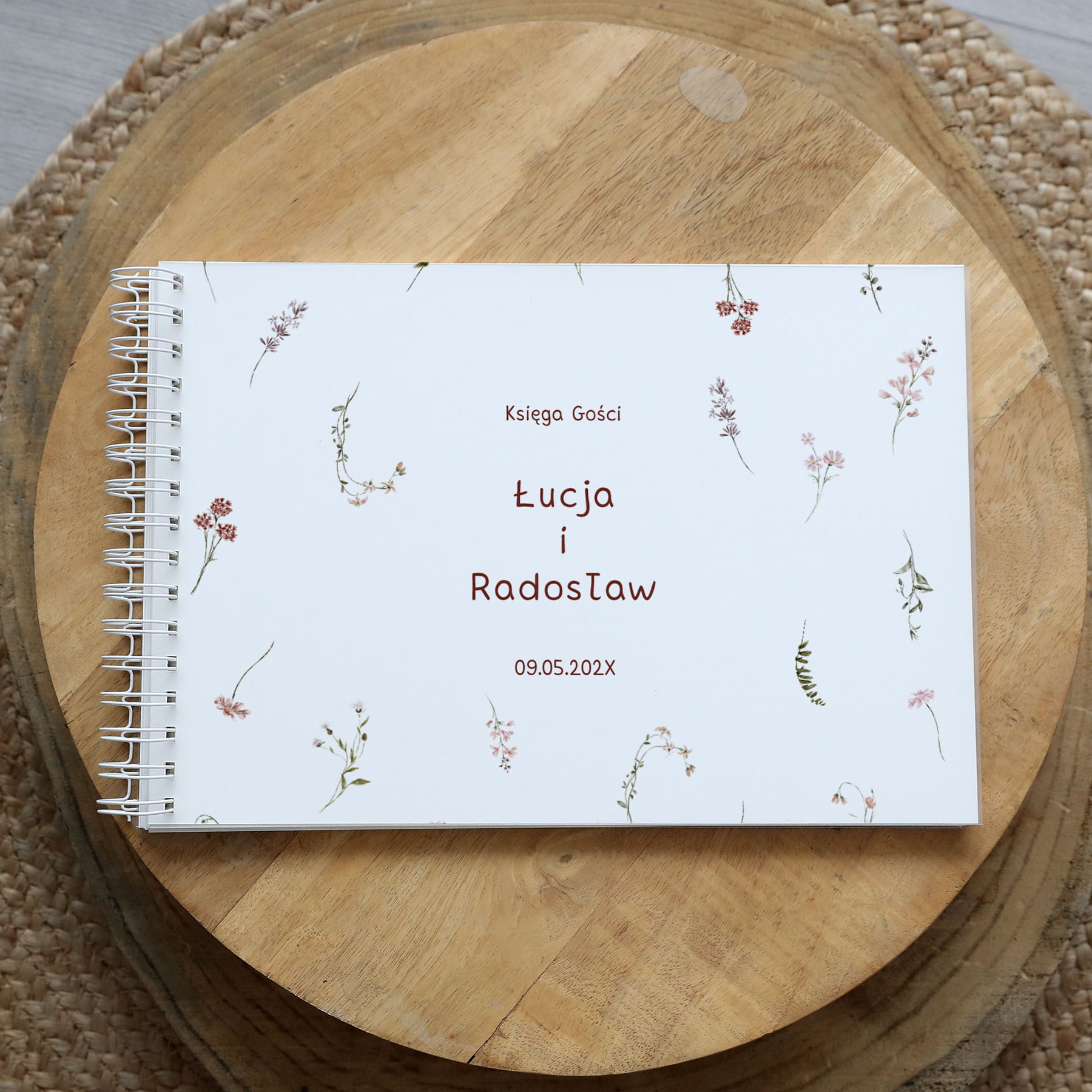 Księga gości klasyczna lub z ankietami - wzór z rustykalnymi polnymi kwiatami