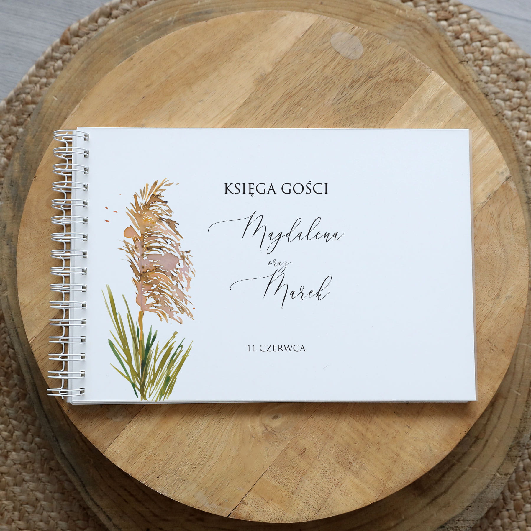 Księga gości klasyczna lub z ankietami - wzór z trawą pampasową