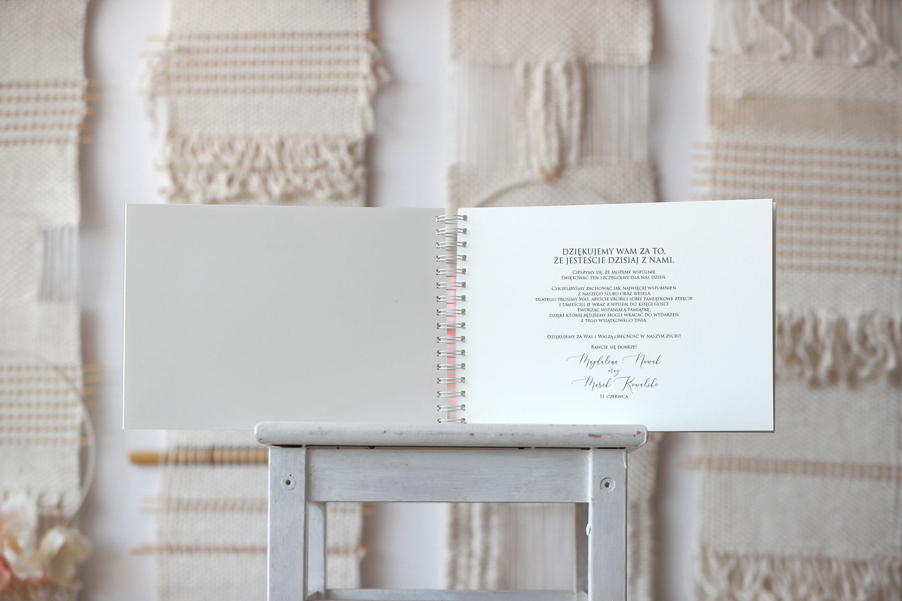 Tak, aby na lewej stronie było miejsce na umieszczenie życzeń, zdjęć lub innych wpisów do gości.