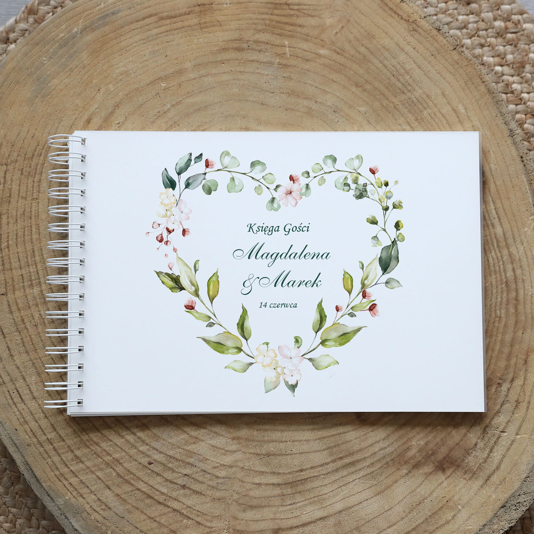 Księga gości klasyczna lub z ankietami - wzór z zielonym serduszkiem