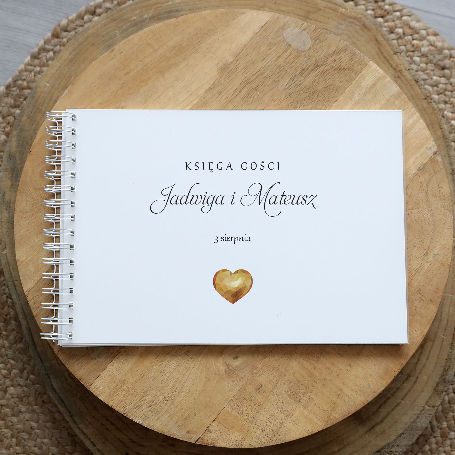 Księga gości klasyczna lub z ankietami - wzór ze złotym sercem