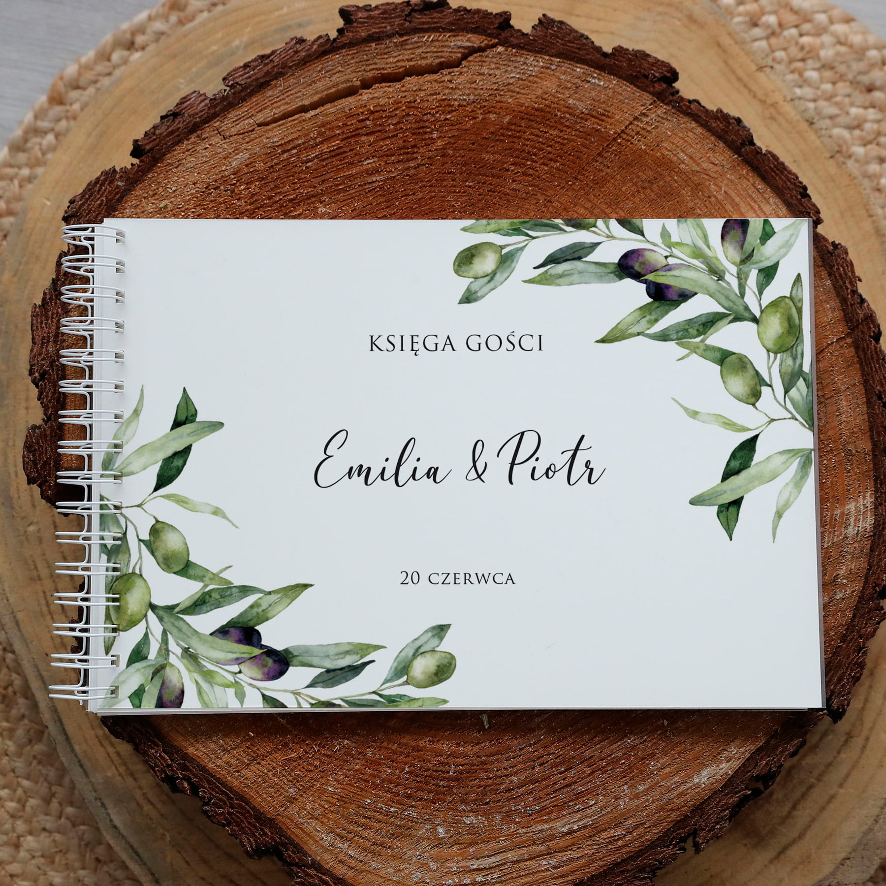 Księga gości na przyjęcie weselne z gałązkami oliwnymi