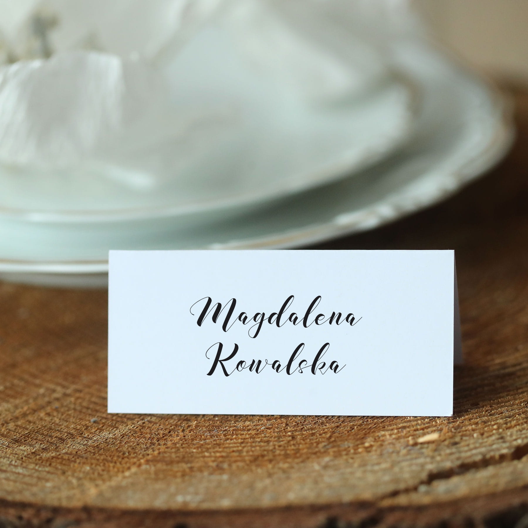 Winietki na przyjęcie weselne drukujemy standardowo na wysokiej jakości papierze graficznym białym.