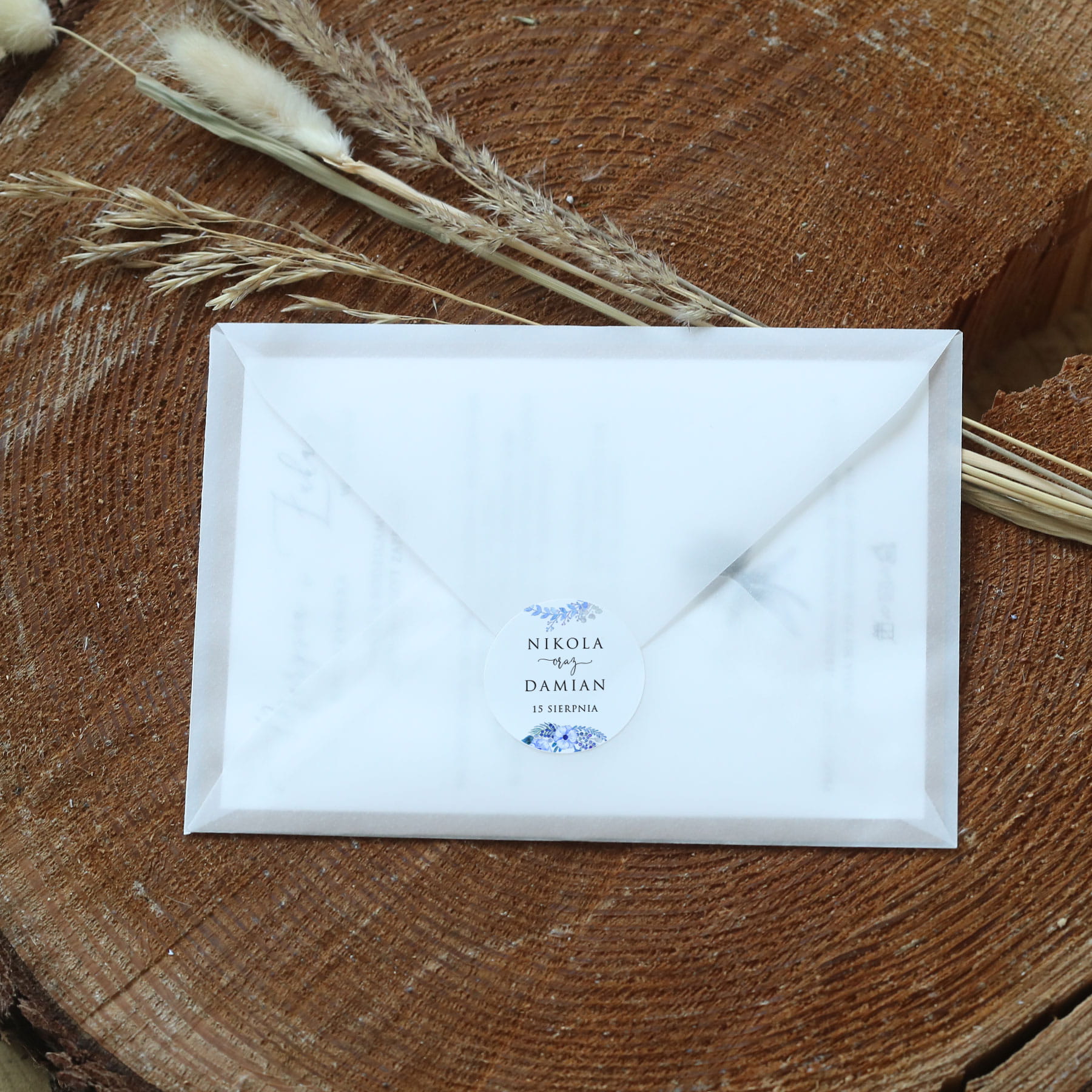 Naklejki ślubne z błękitnym wianuszkiem