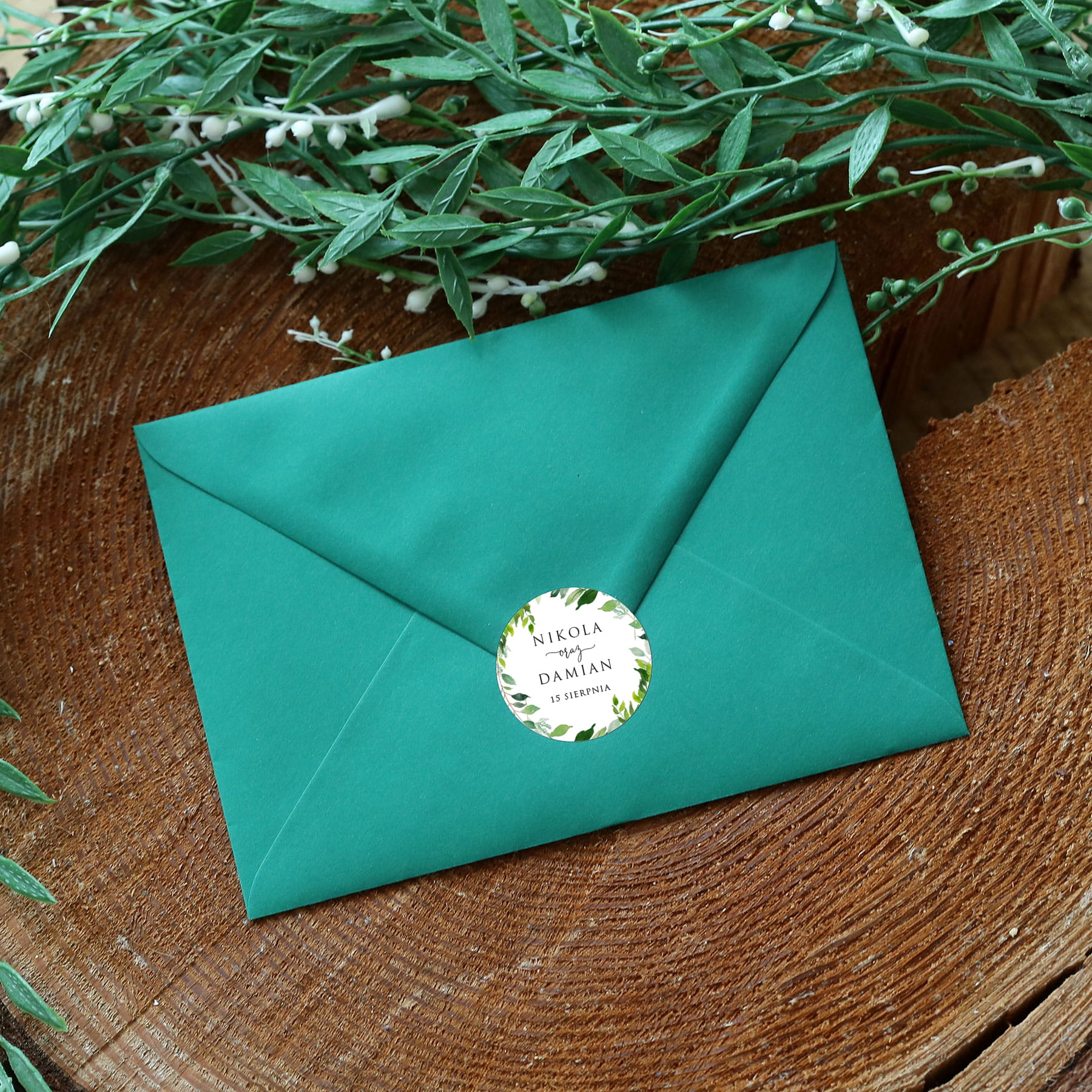 Naklejki ślubne z zielonymi listkami