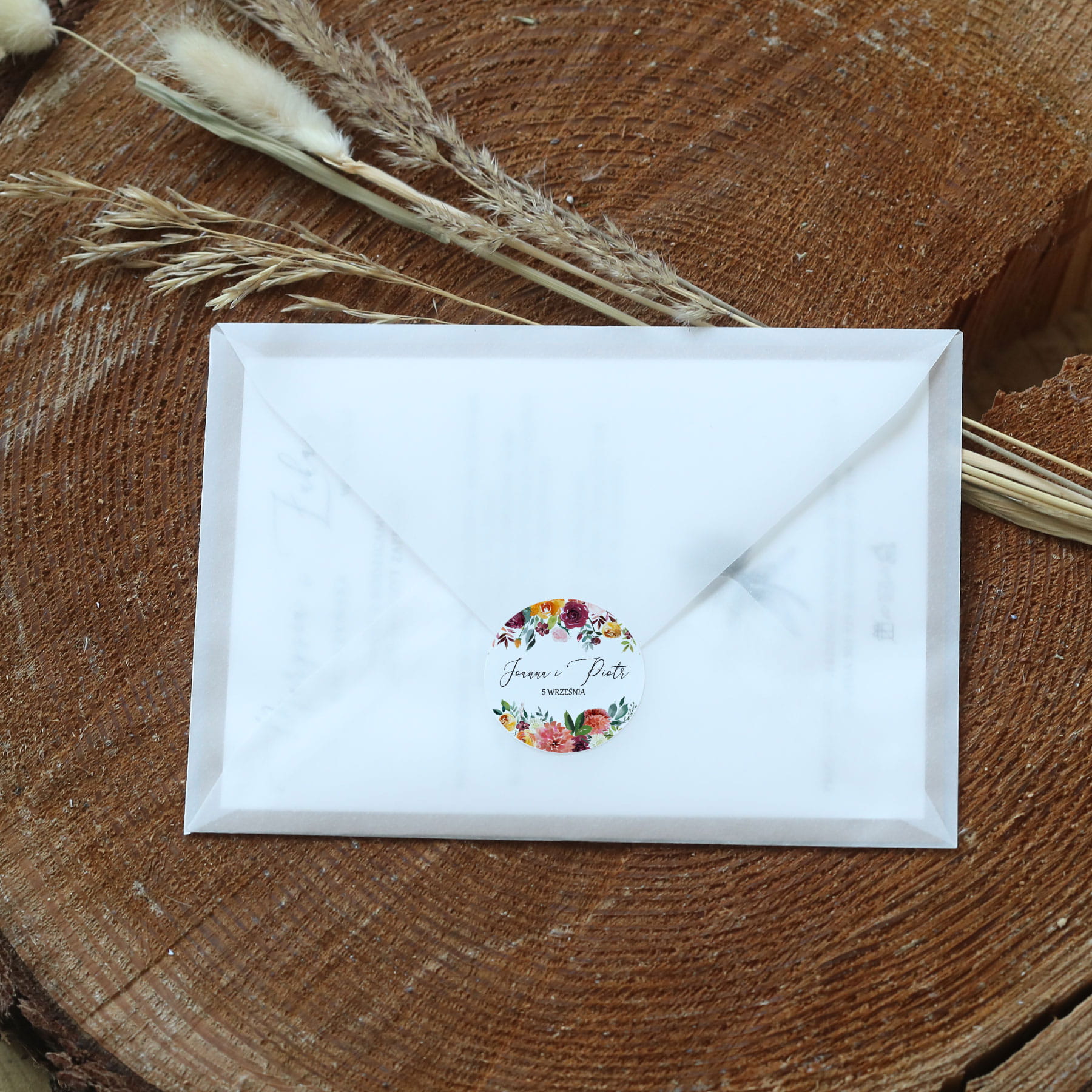 Naklejki ślubne z pomarańczowymi kwiatami boho różne rozmiary