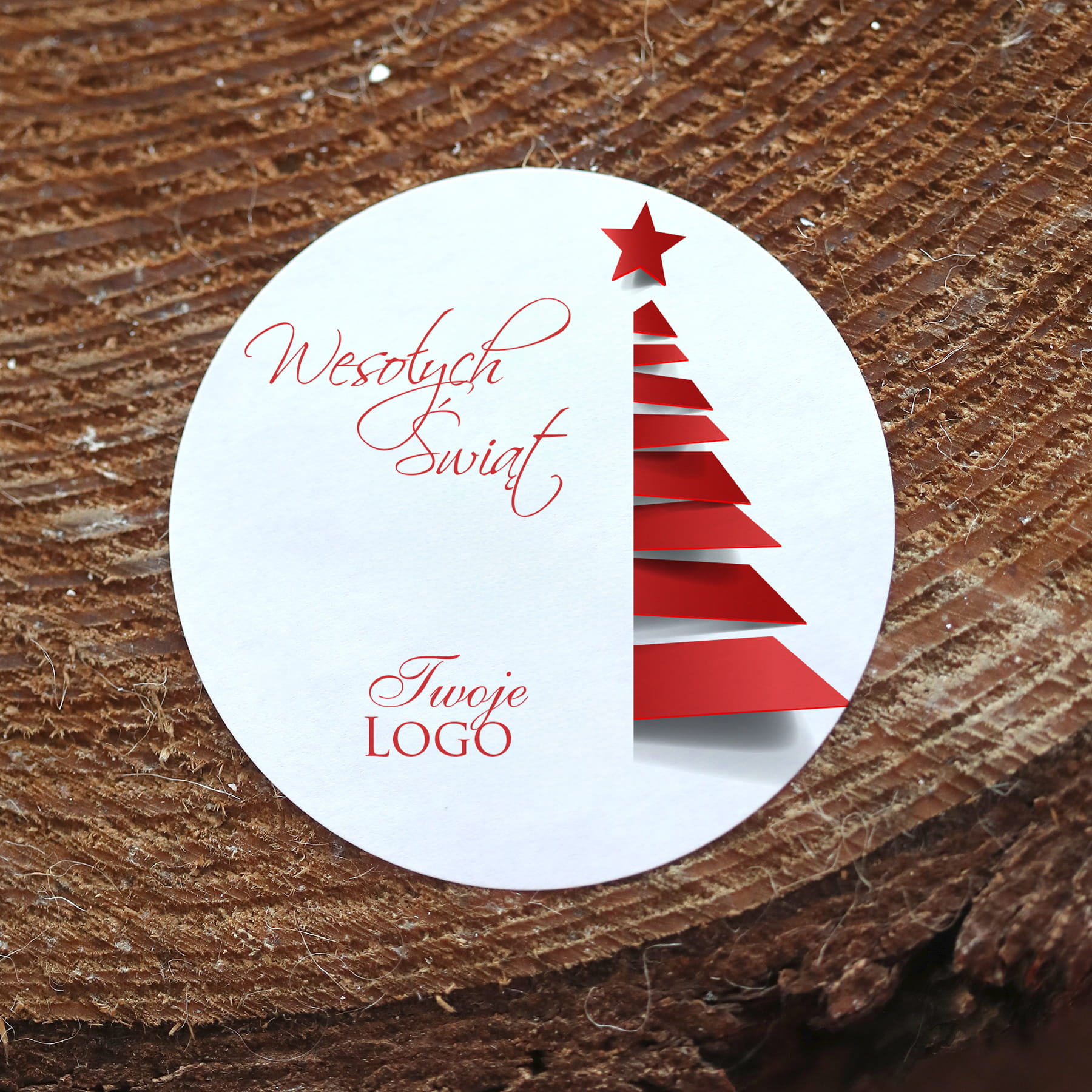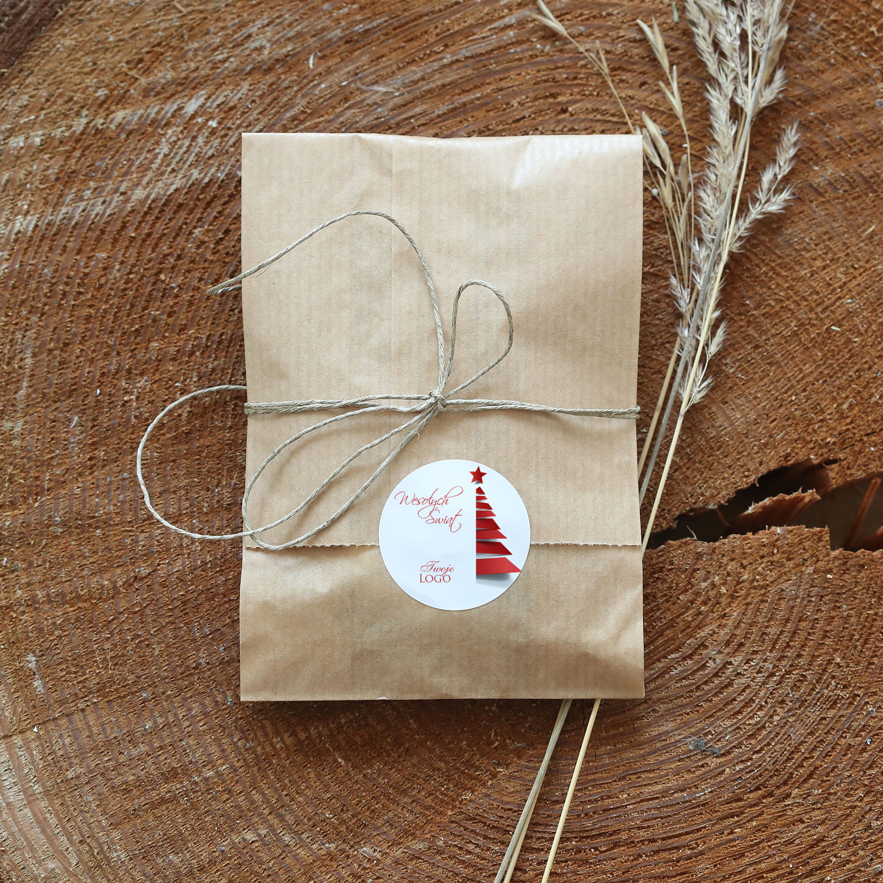 Naklejki z logo biało-czerwone z choinką
