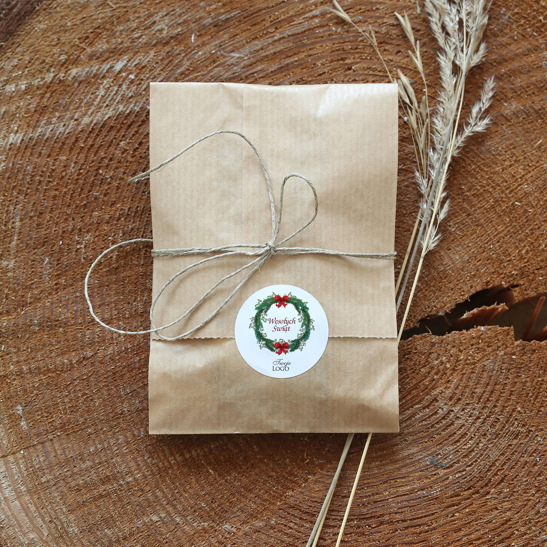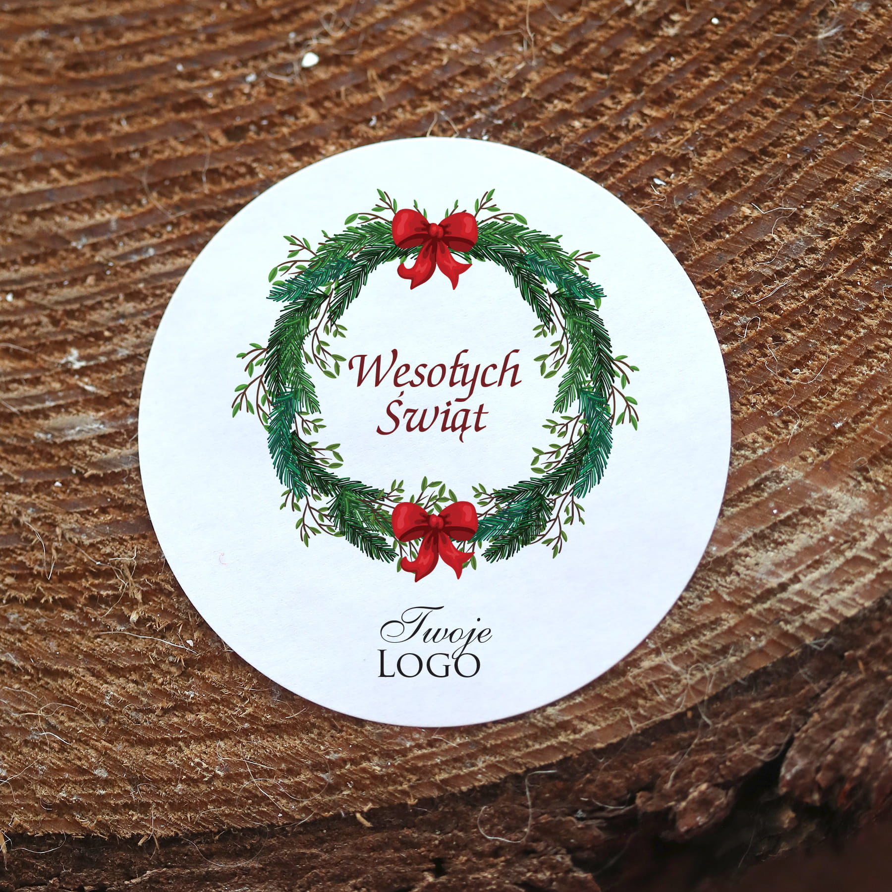 Naklejki z logo z grafiką ozdobnego świątecznego wieńca