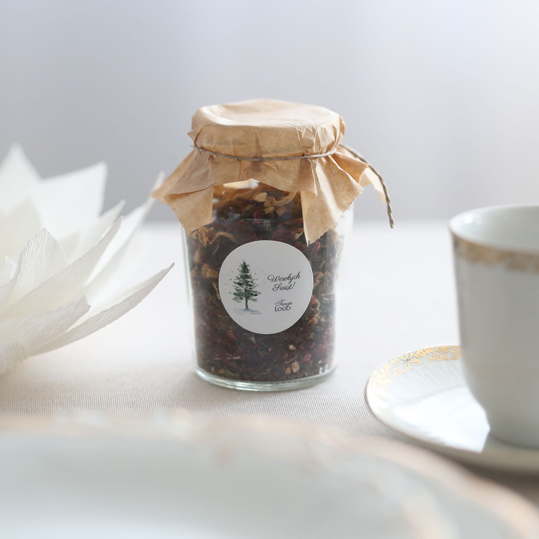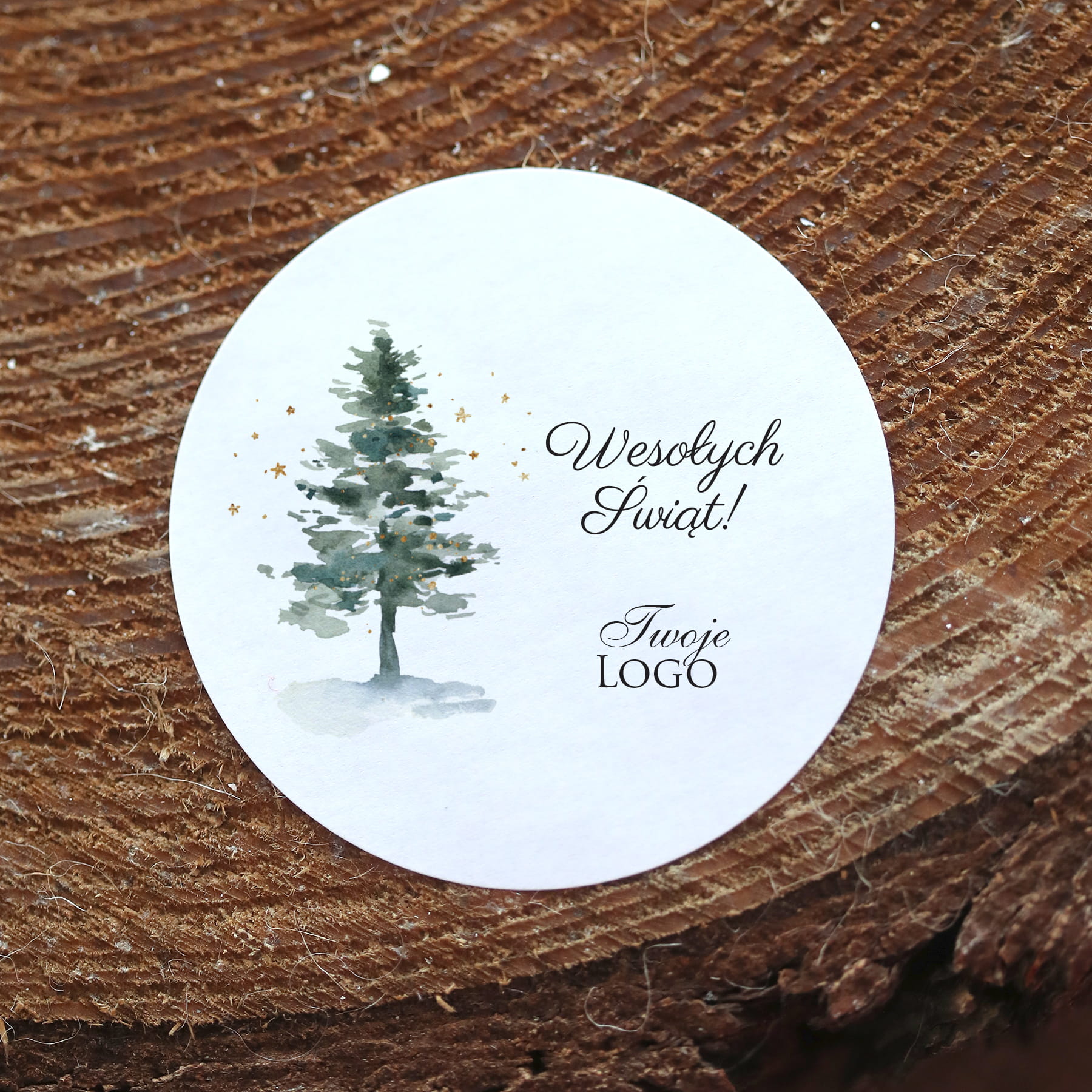 Naklejki z logo z motywem choinki malowanej techniką akwareli