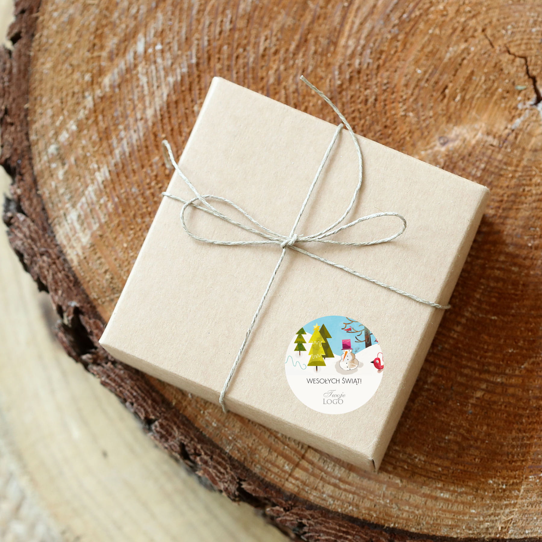 Naklejki z logo z zimową scenerią