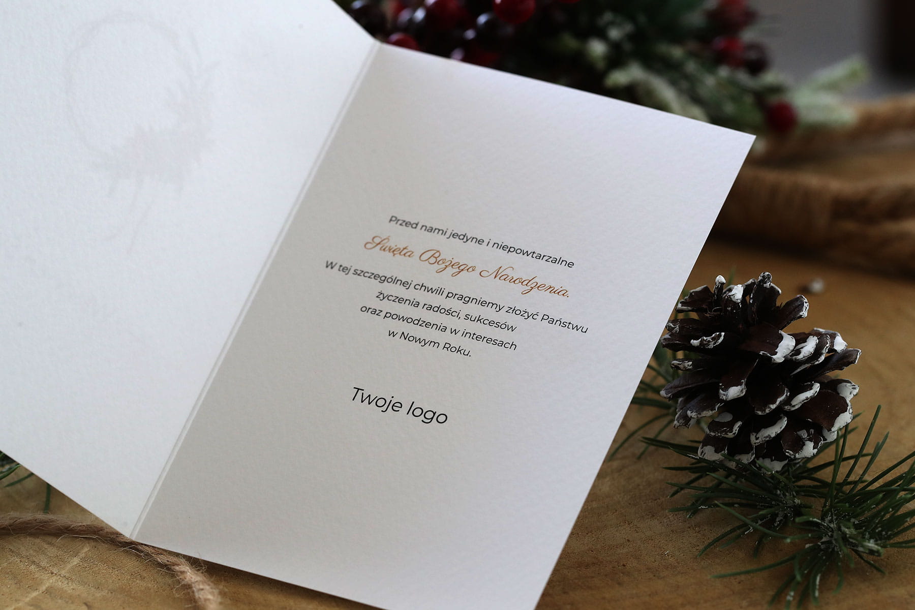 Unikatowe kartki świąteczne z logo - treść życzeń