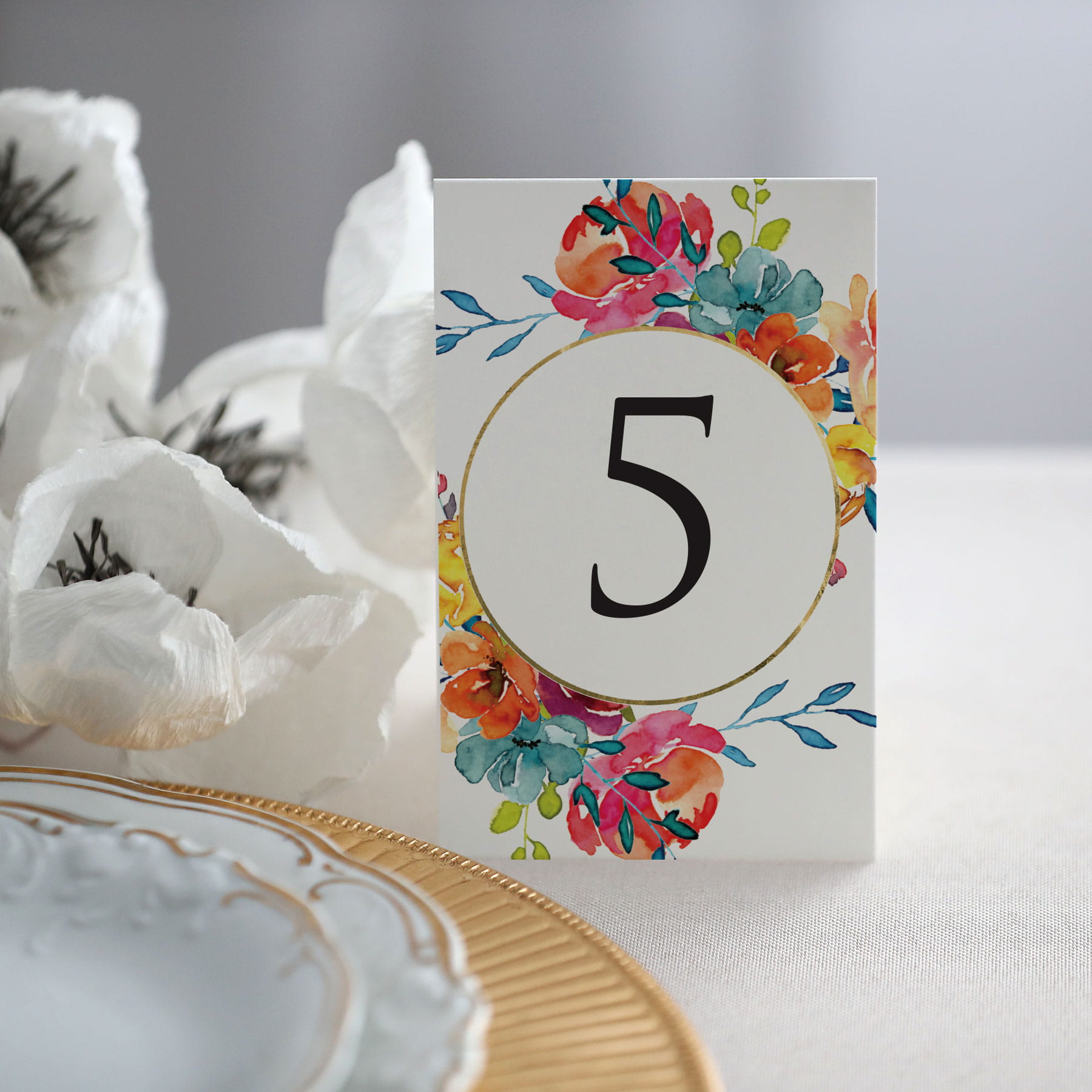 Spójna grafika na planu stołów, numerków i winietek pięknie dopełnia dekorację przyjęcia.