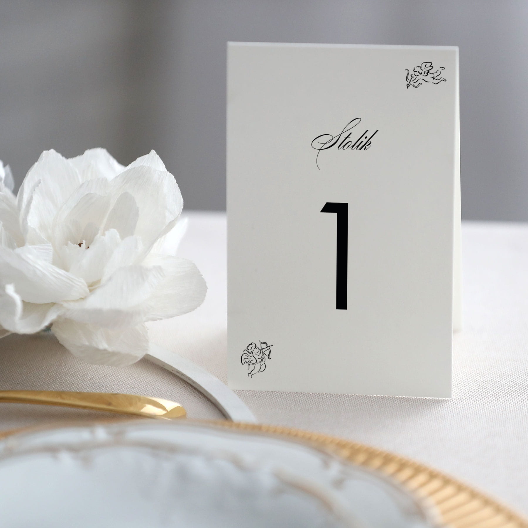 Numerki na stół z amorkami