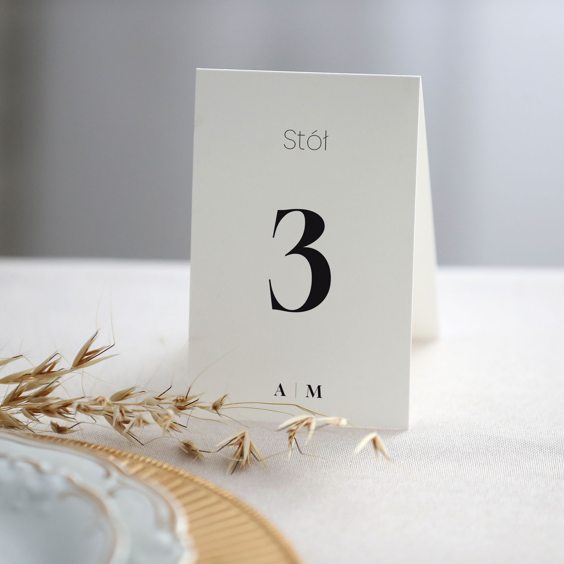 Numerki na stół z minimalistycznymi inicjałami