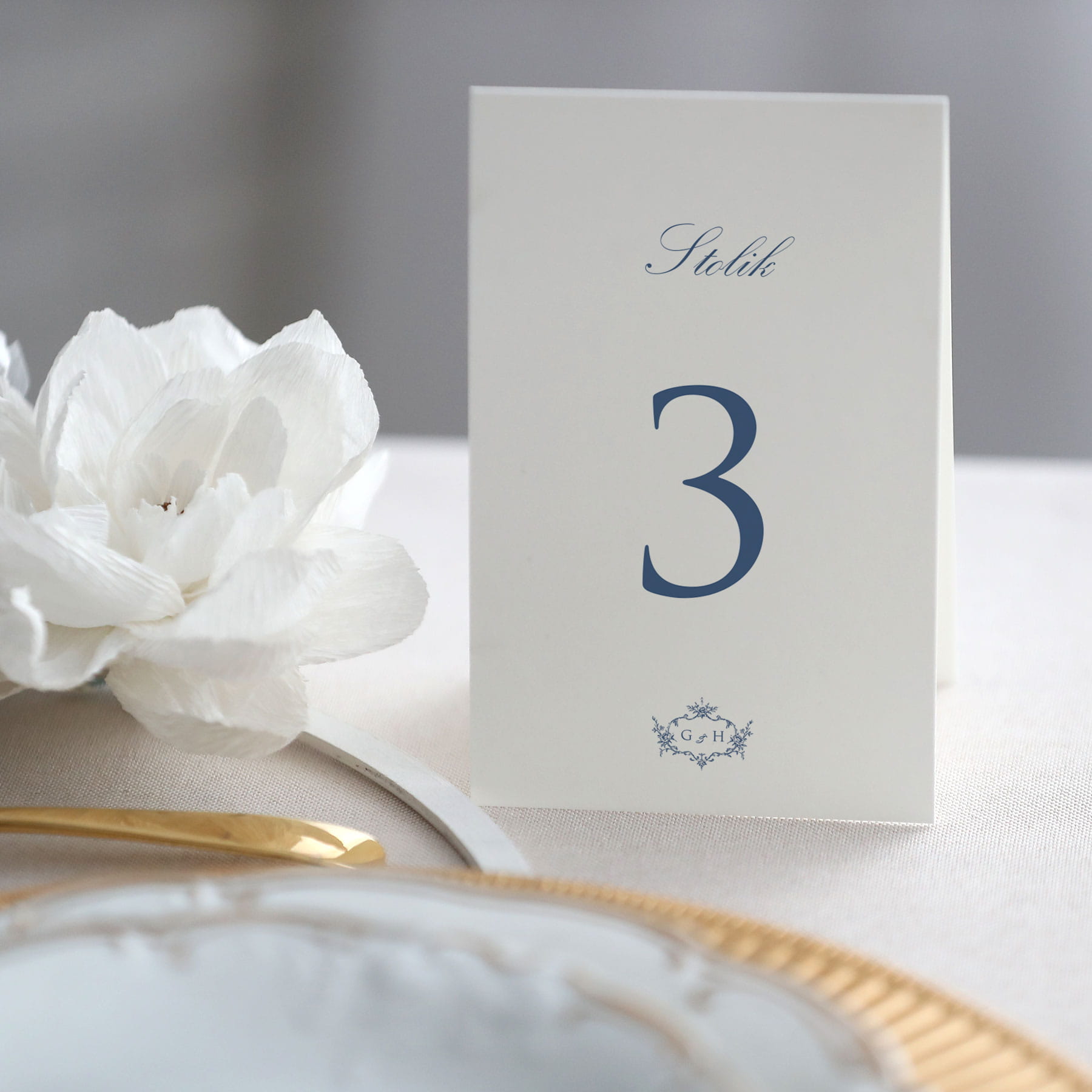 Numerki na stół z niebieskimi kwiatuszkami