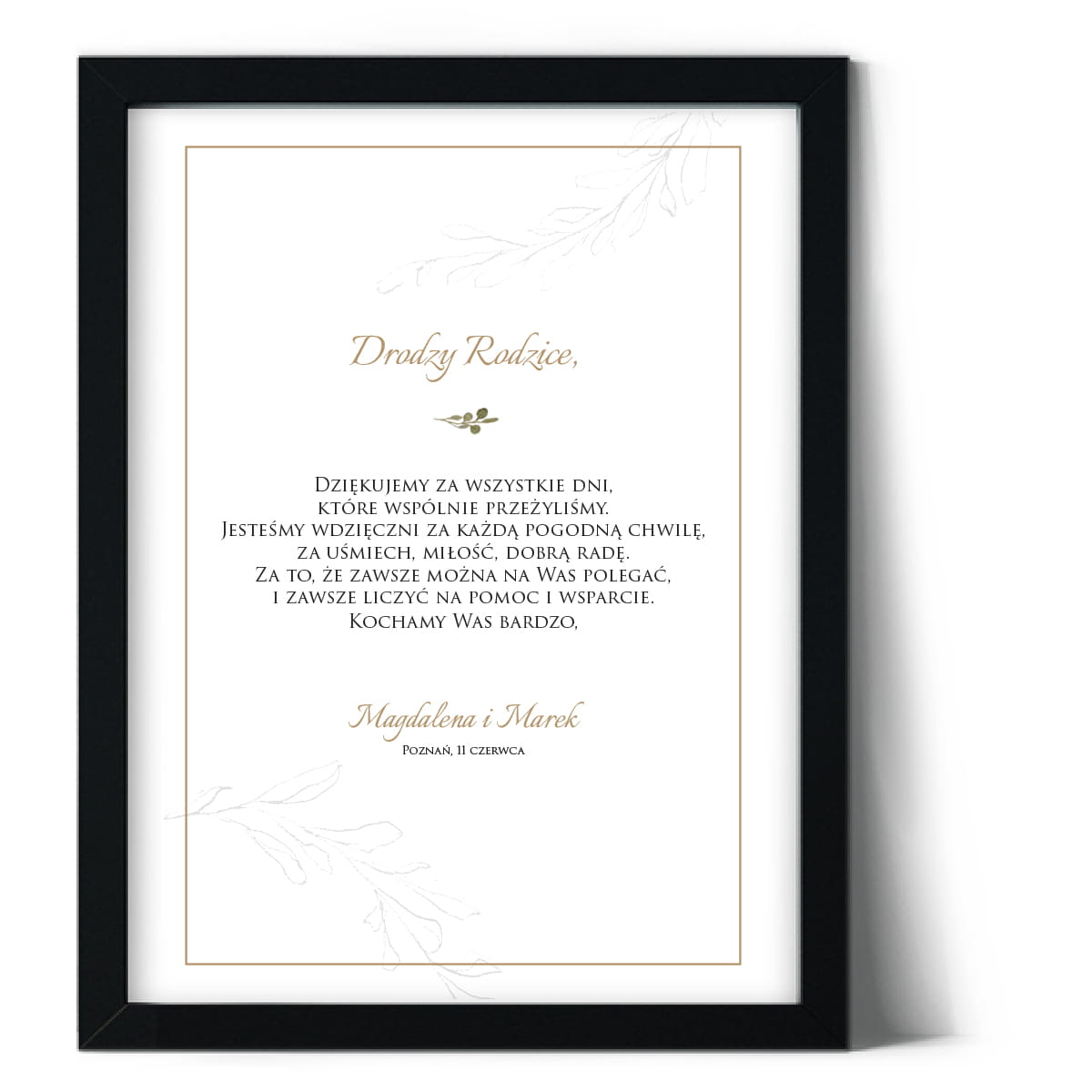 Plakat podziękowania dla rodziców z delikatną gałązką