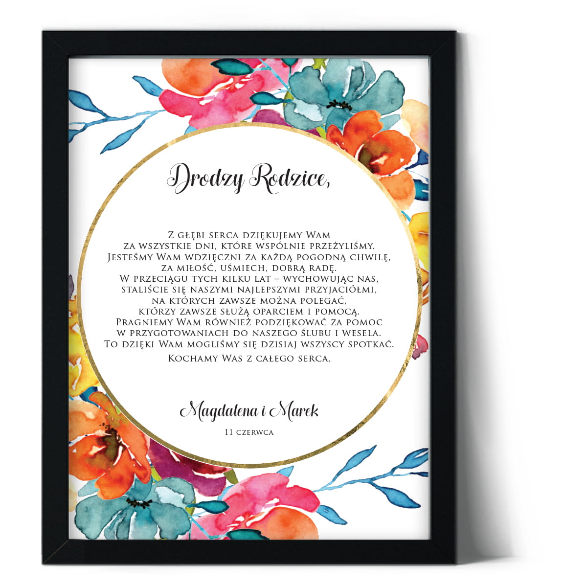 Rodzice to wyjątkowi goście na uroczystości weselnej. Podarujcie im przepiękny plakat z podziękowaniem.