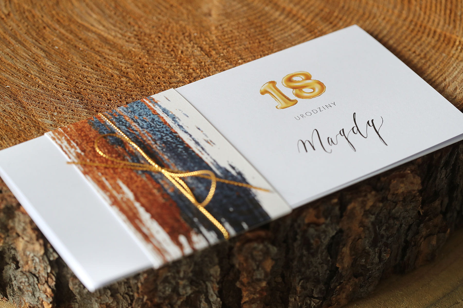Pomarańczowo-złote zaproszenia na 18 urodziny