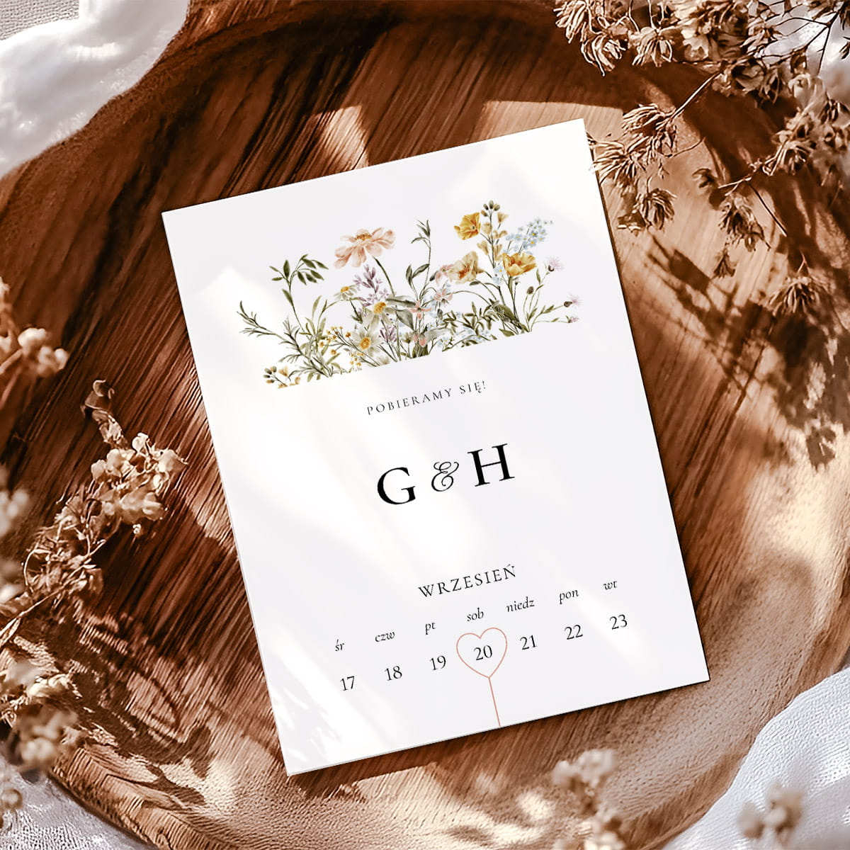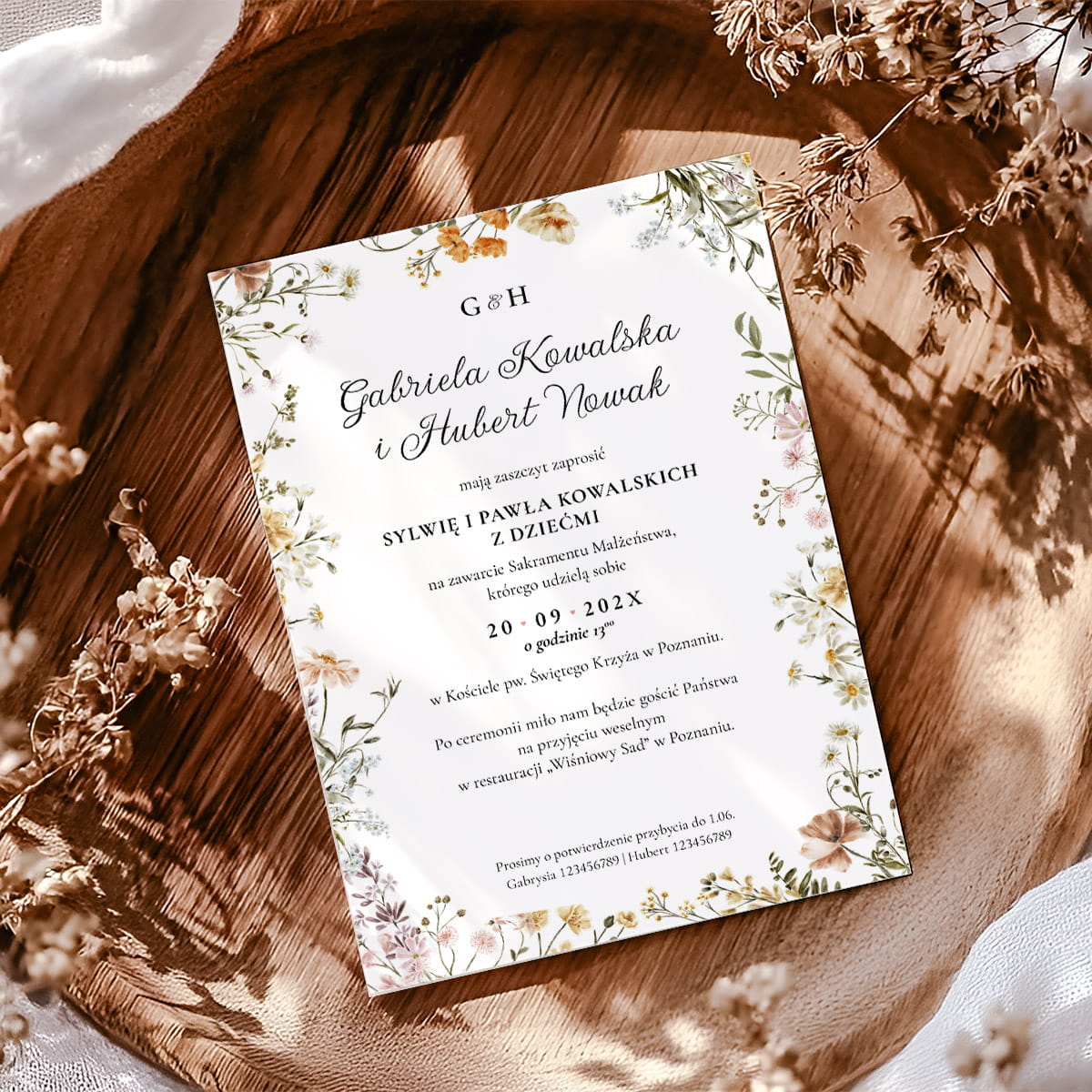 Zaproszenia ślubne boho kwiatowe akwarela jesienna łąka - 12x17 cm