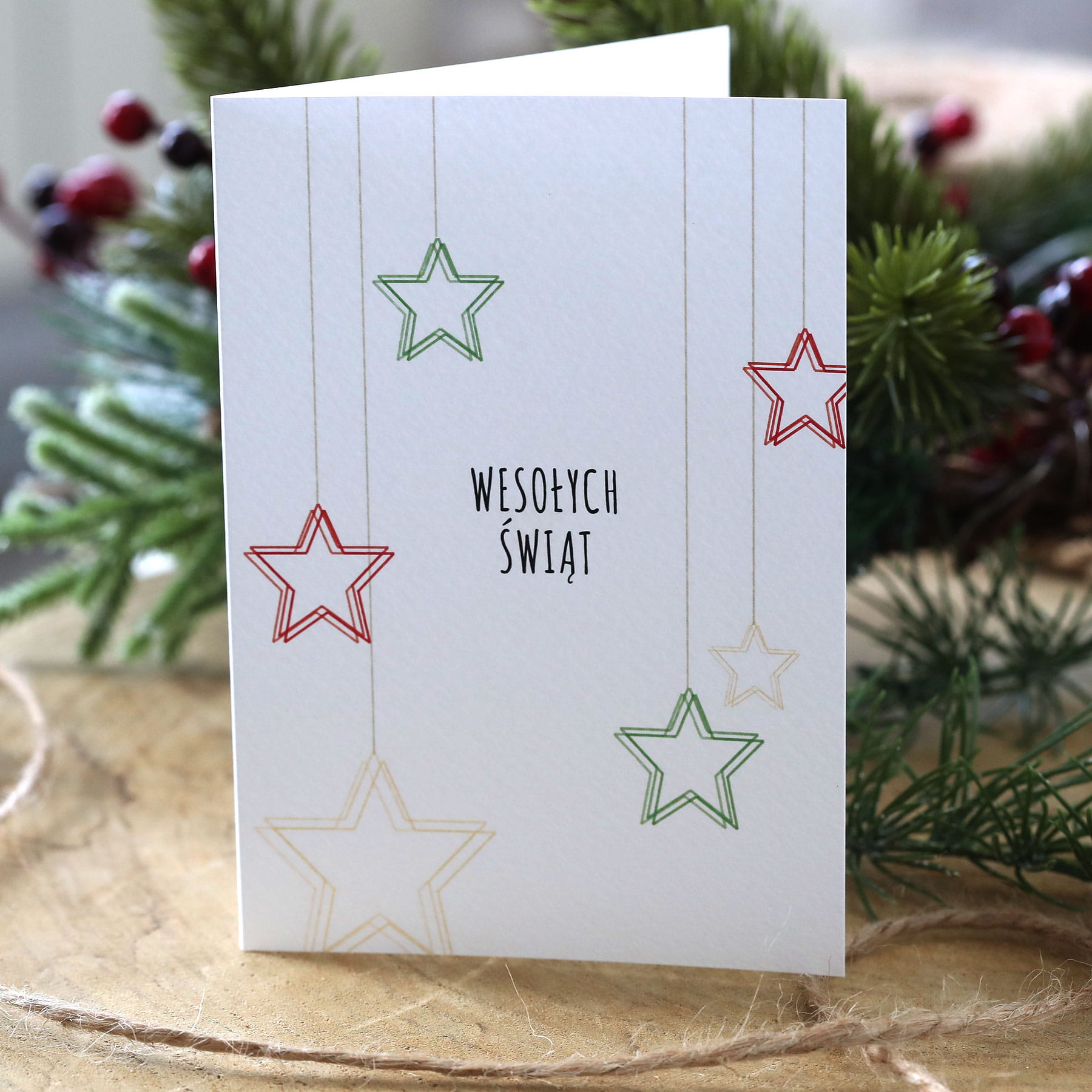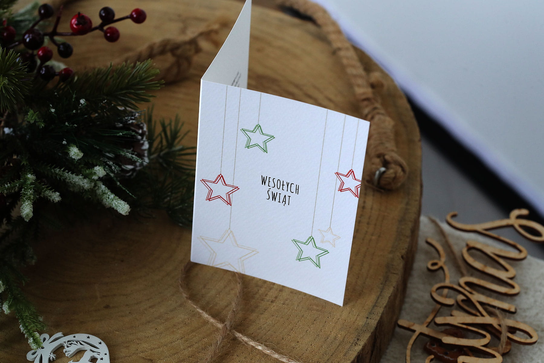 Świateczna kartka firmowa z gwiazdkami - 10x15 cm