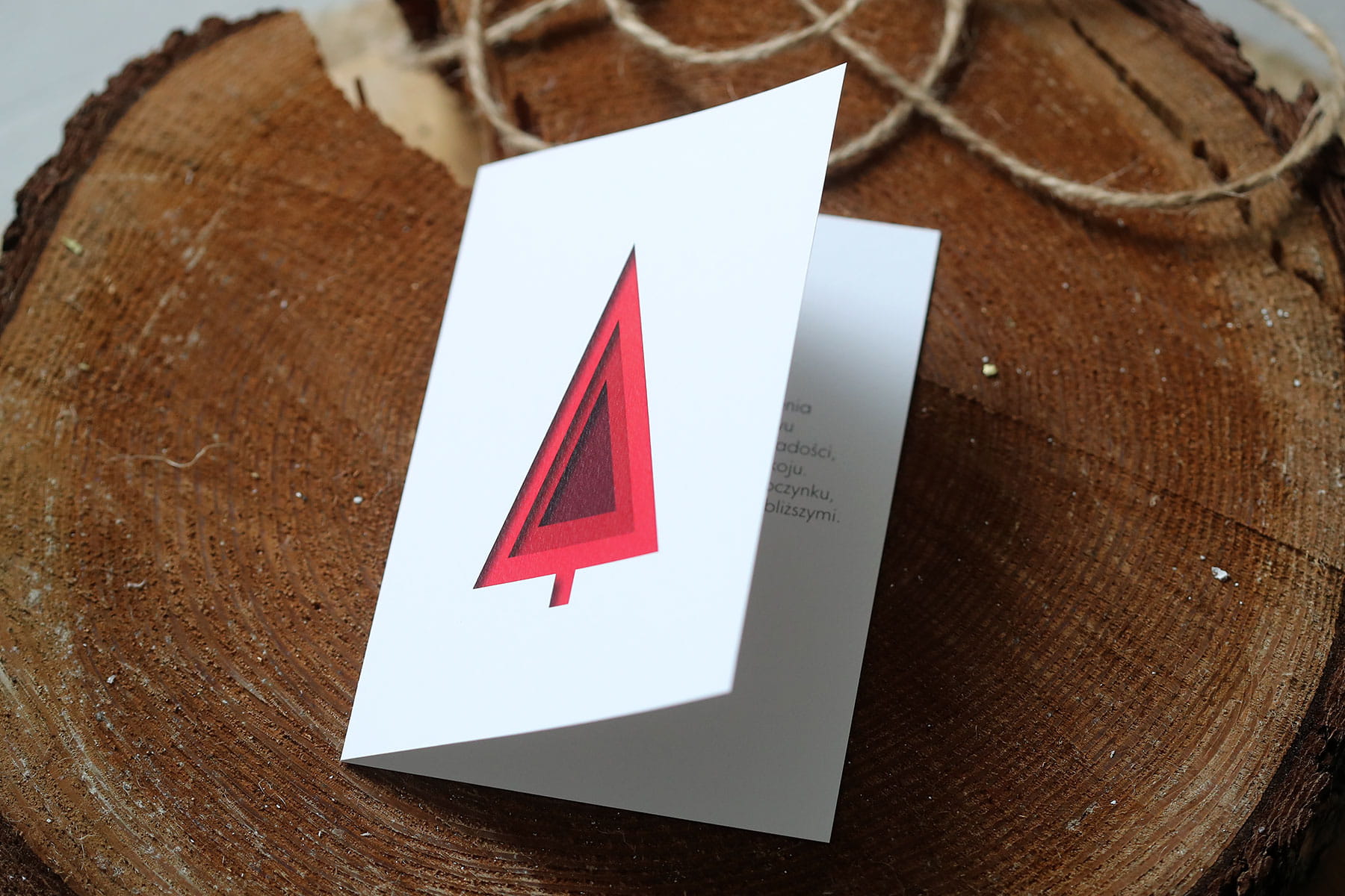 Kartka firmowa świąteczno-noworoczna z czerwoną choinką z efektem wyciętego papieru