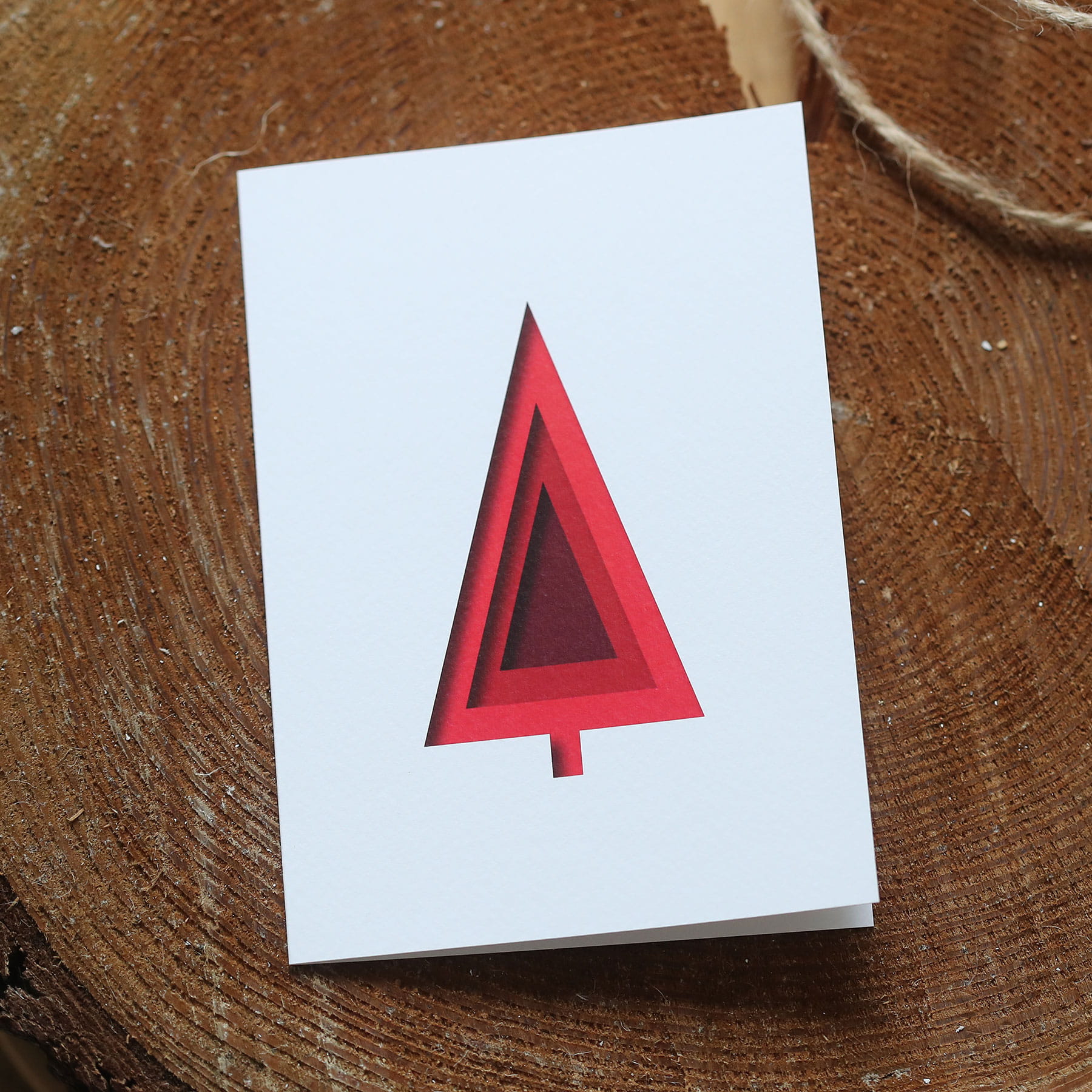 Świąteczna kartka firmowa z minimalistyczną czerwoną choinką - 12x17 cm