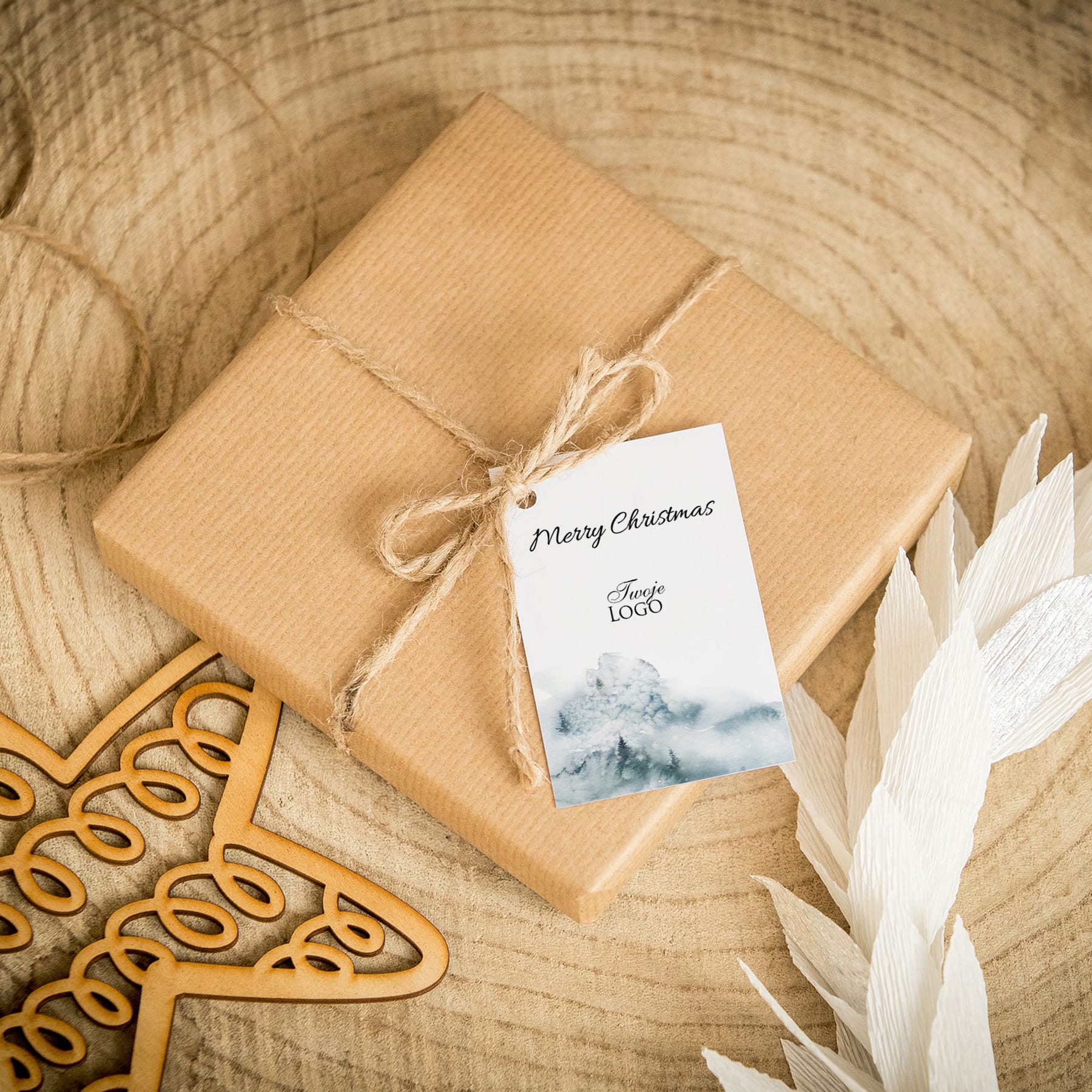 Świąteczne bileciki z logo z akwarelowym zimowym krajobrazem