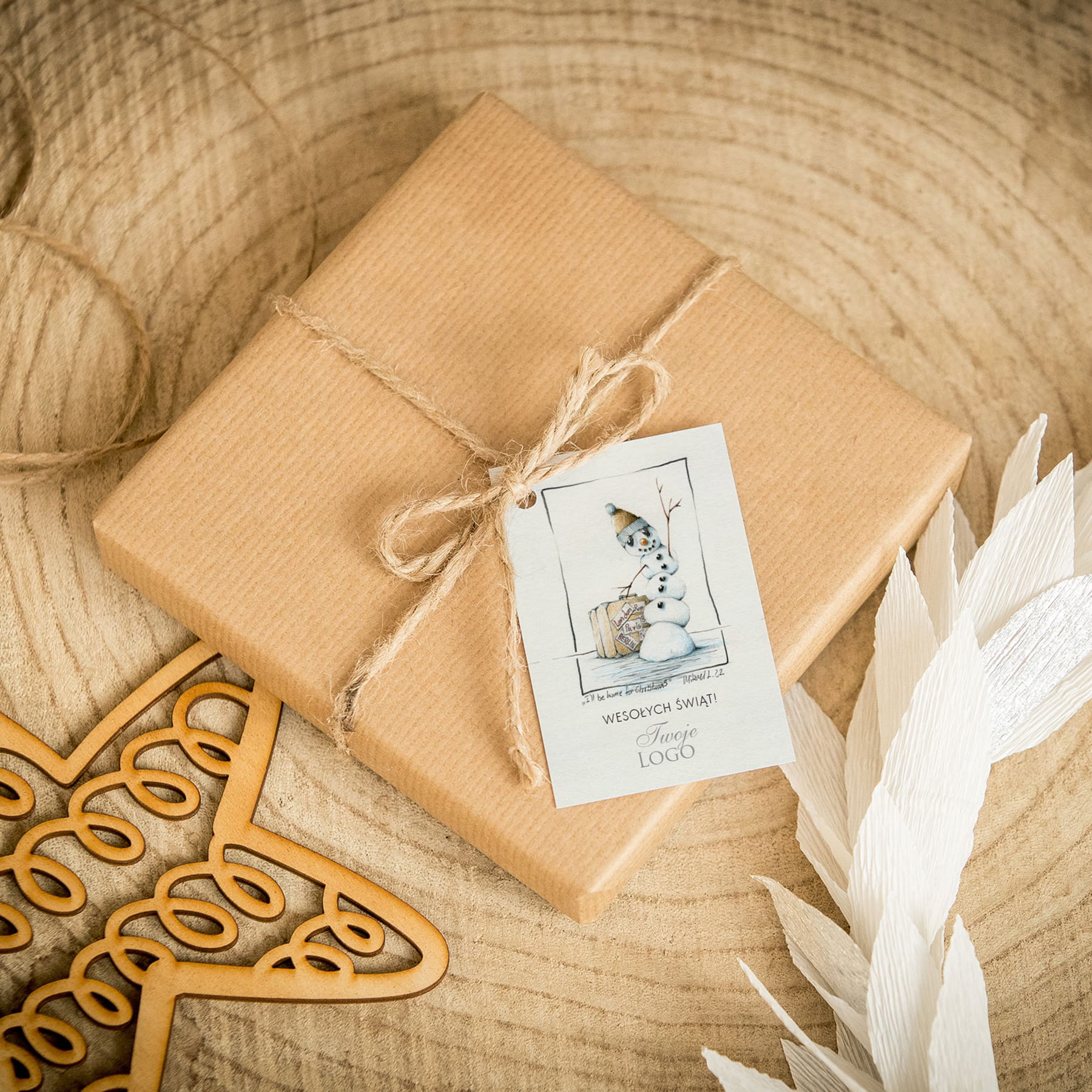 Świąteczne bileciki z logo z bałwankiem i walizką