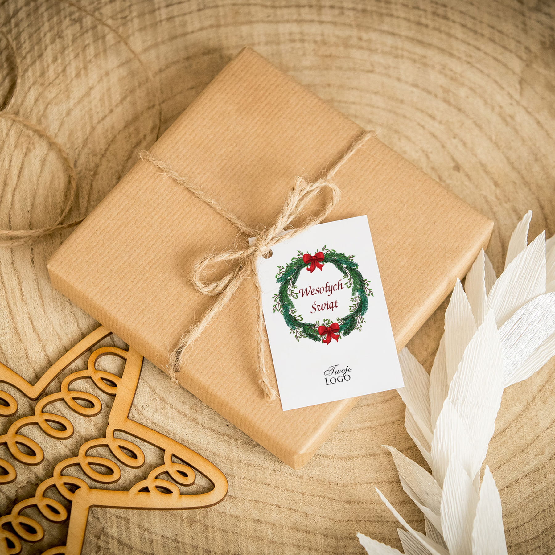 Świąteczne bileciki z logo z grafiką ozdobnego świątecznego wieńca