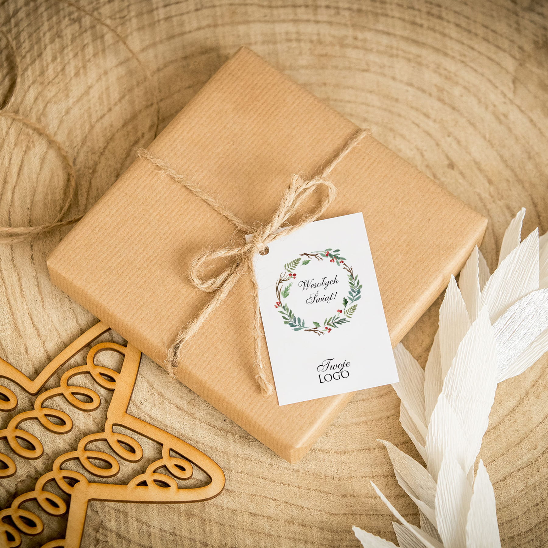Świąteczne bileciki z logo z motywem delikatnego wianuszka