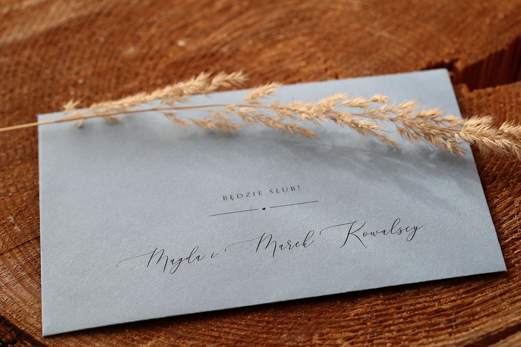 - z nadrukiem imion i nazwisk gości - ułatwiający szukanie wśród spakowanych zaproszeń