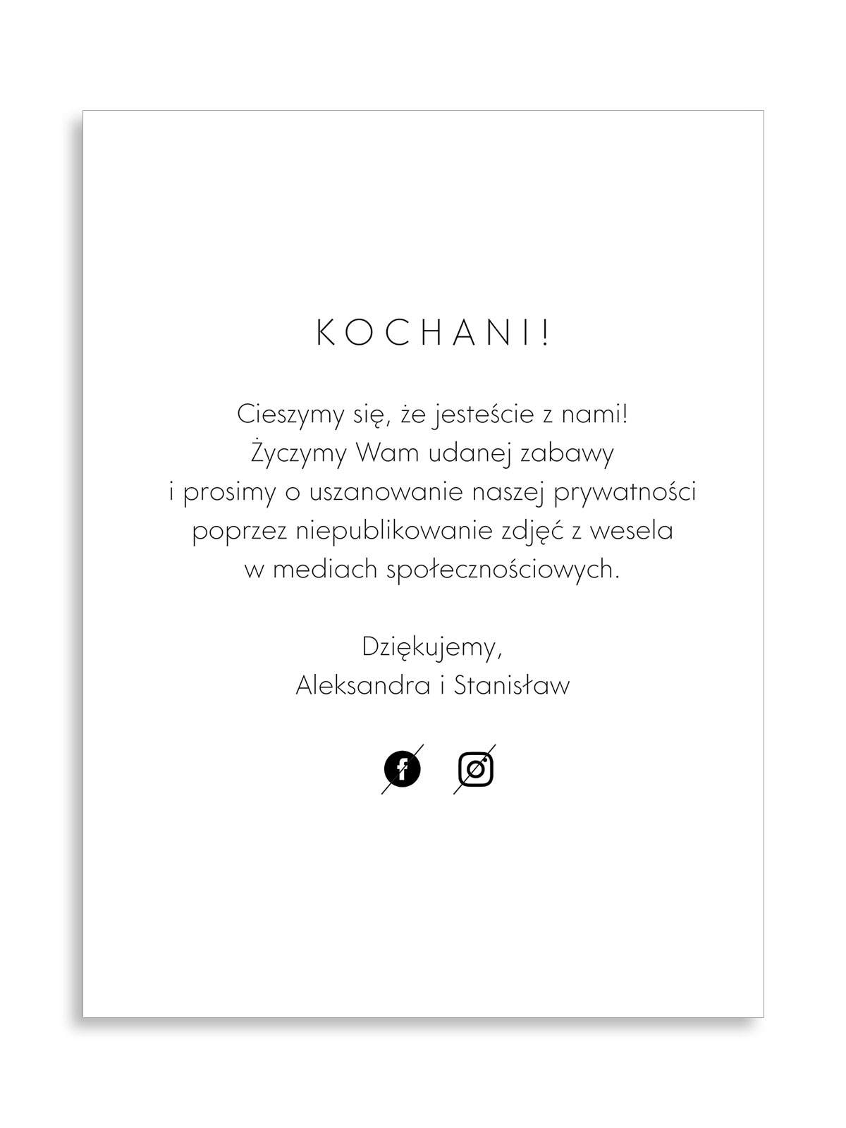 - Media społecznościowe - nie każdy chce aby zdjęcia wykonane w czasie przyjęcia przez gości były publikowane w mediach społecznościowych.