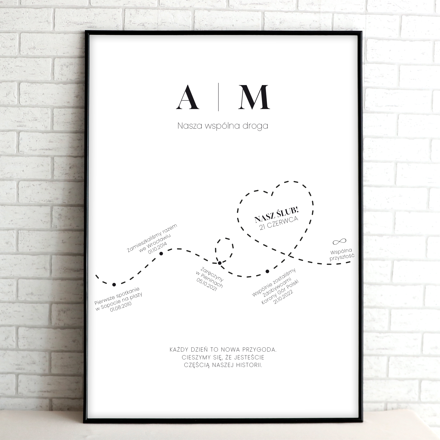 Napiszcie w punktach najważniejsze punkty waszego poznania się aż do momentu ślubu np. Pierwsze spotkania, pierwsza randka, pierwsze wspólne wakacje, zaręczyny itp. My ułożymy je w historię i ozdobimy grafiką.