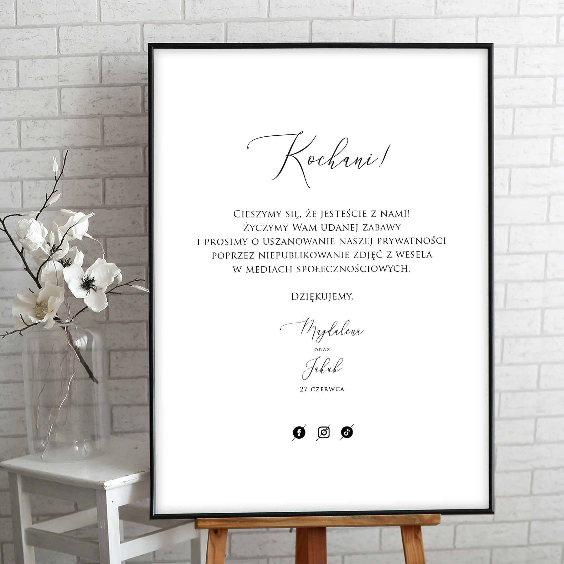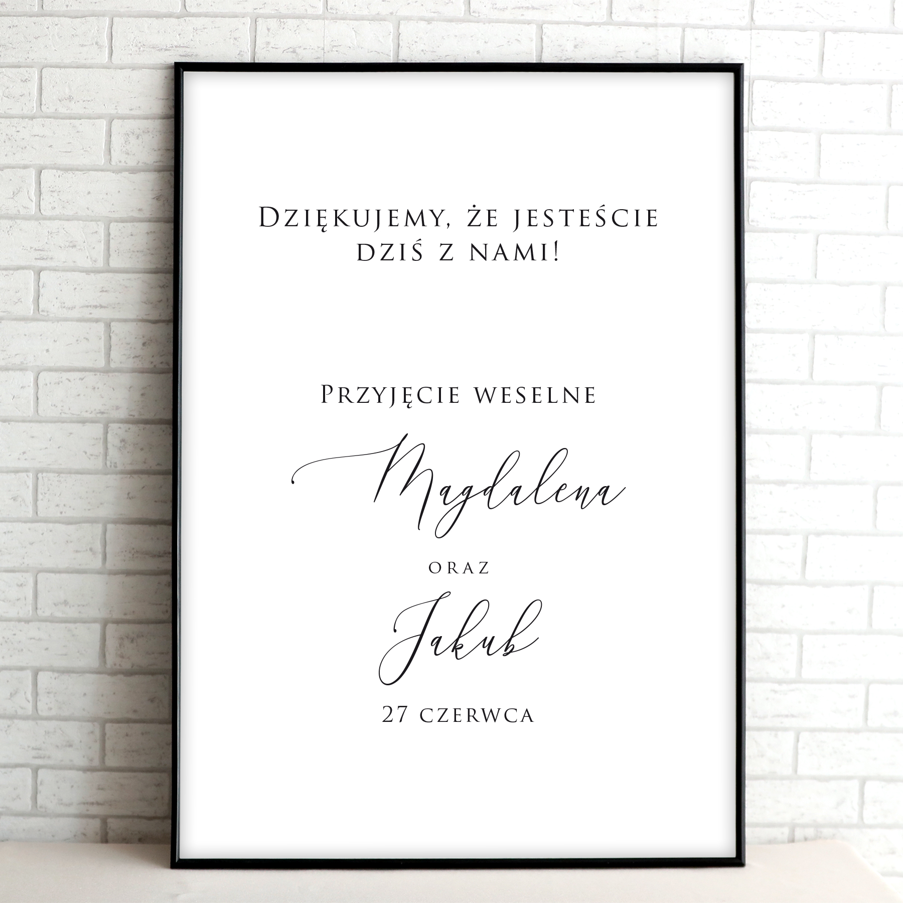 Plakat powitalny / informacyjny na przyjęcie weselne minimalistyczny