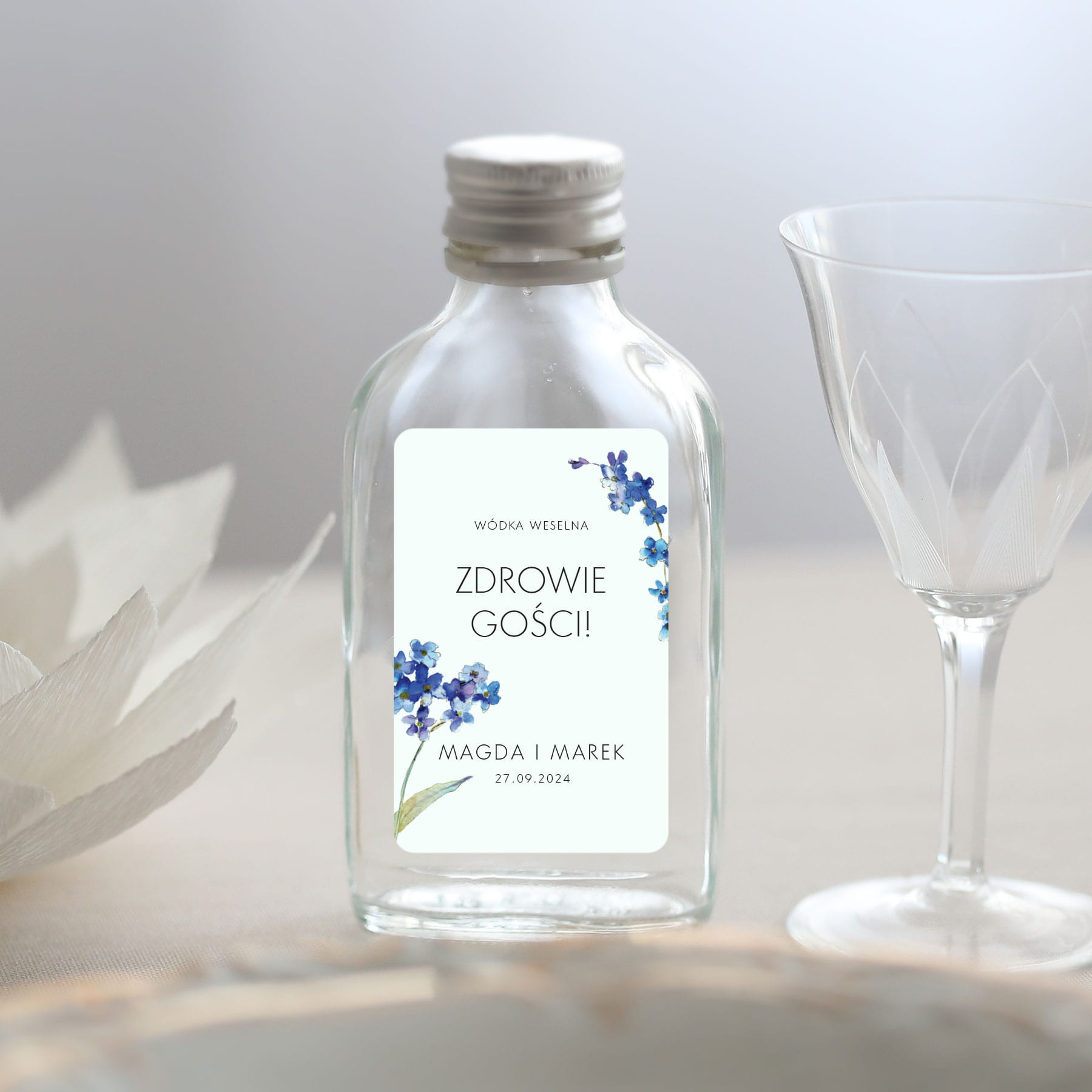 Naklejki na butelki z niezapominajkami