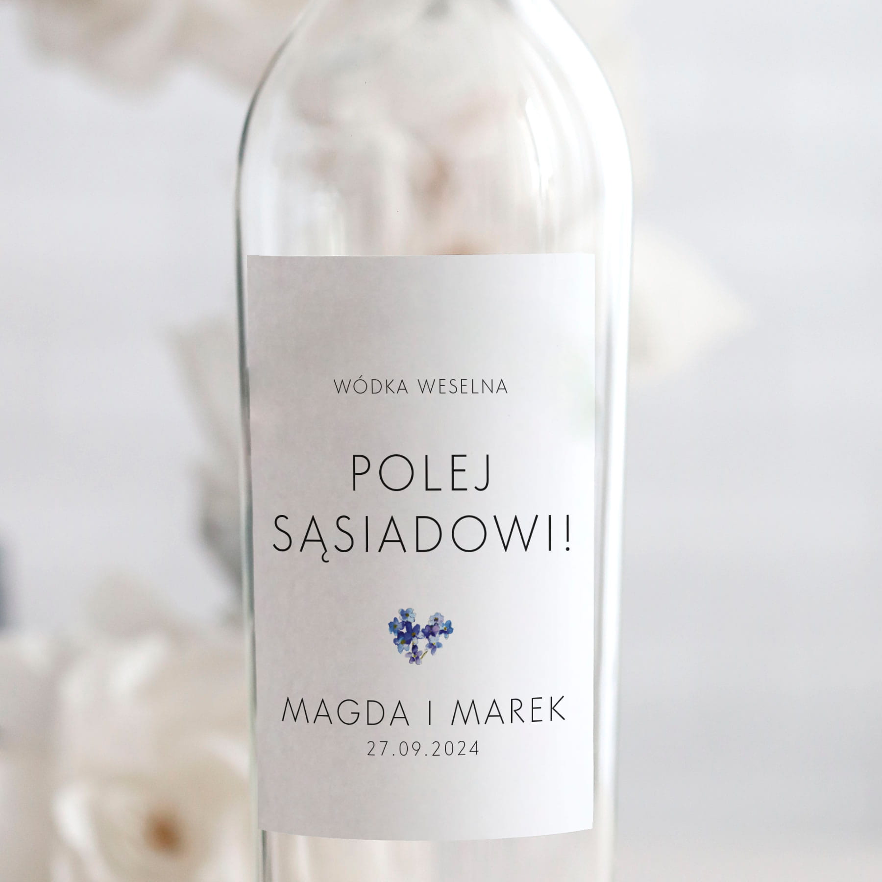 Eleganckie naklejki na butelki ze wzorem niezapominajkowe serduszko