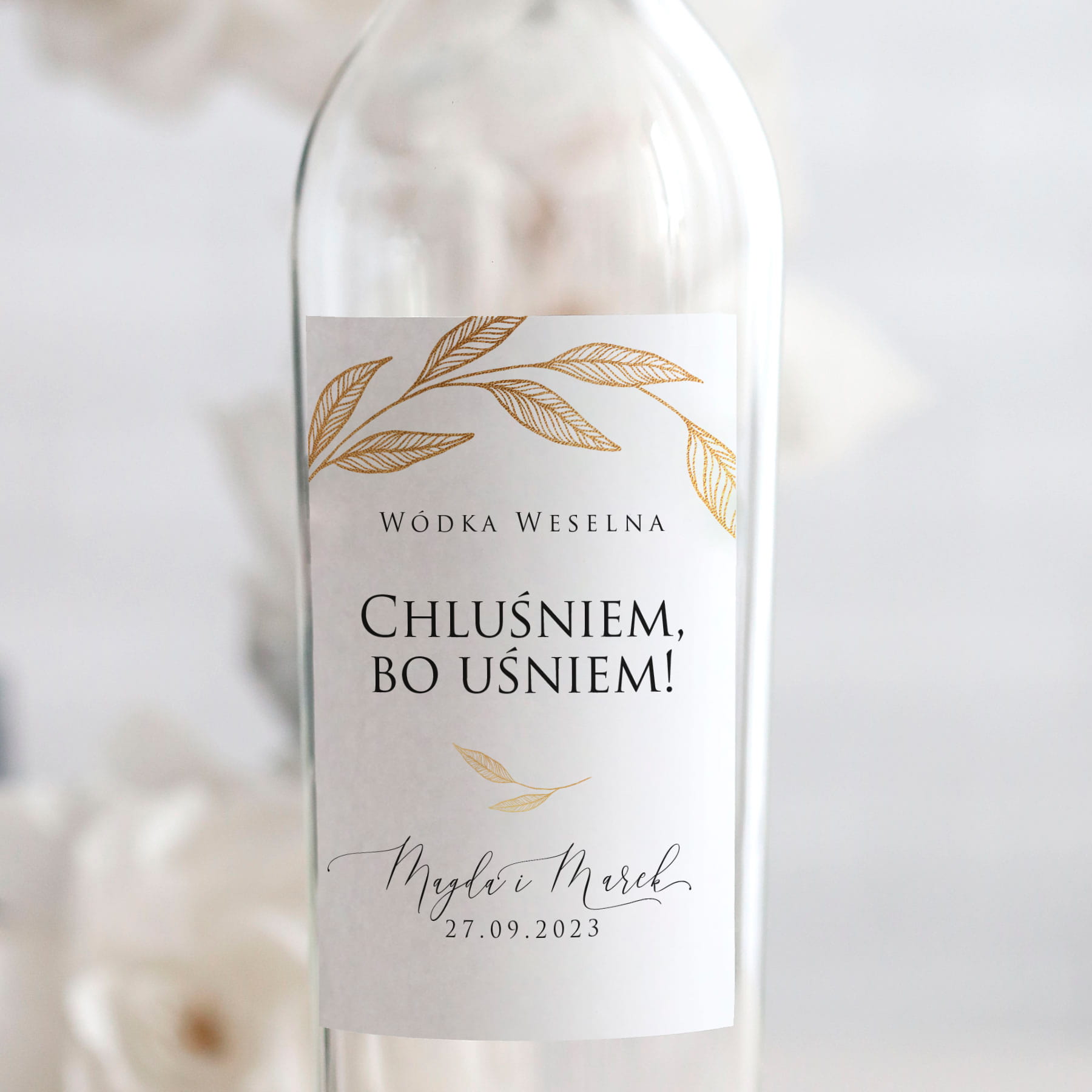 Eleganckie naklejki na butelki ze wzorem złote liście