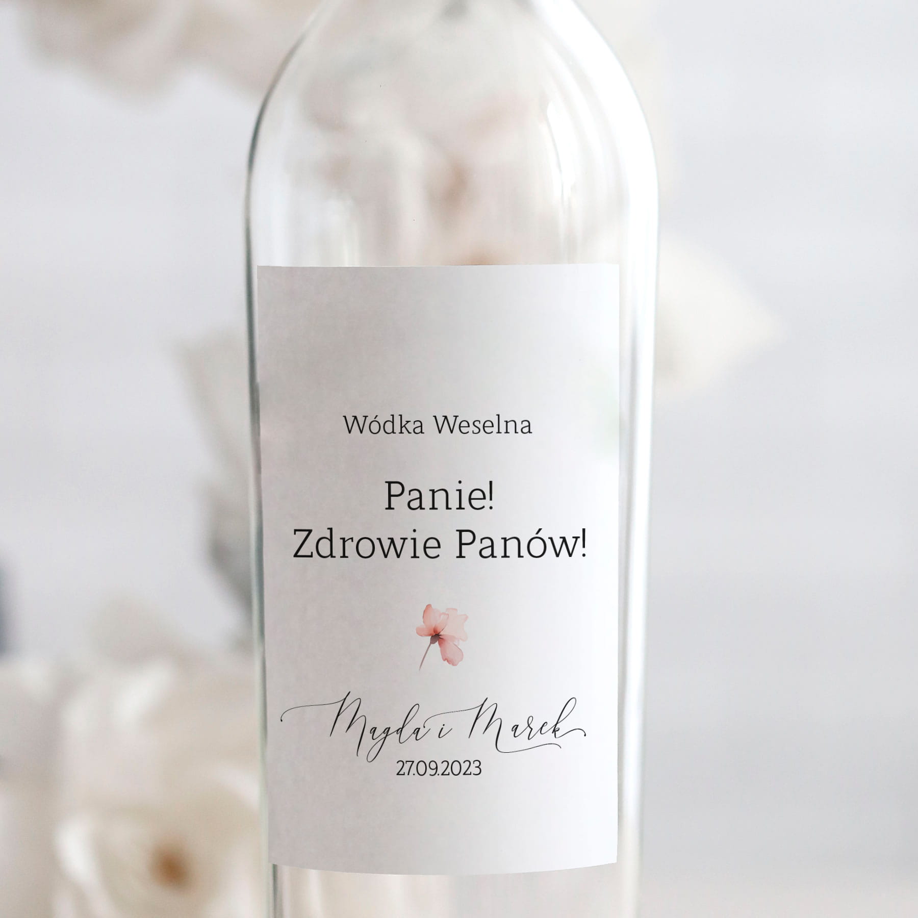 Weselne naklejki na butelkę