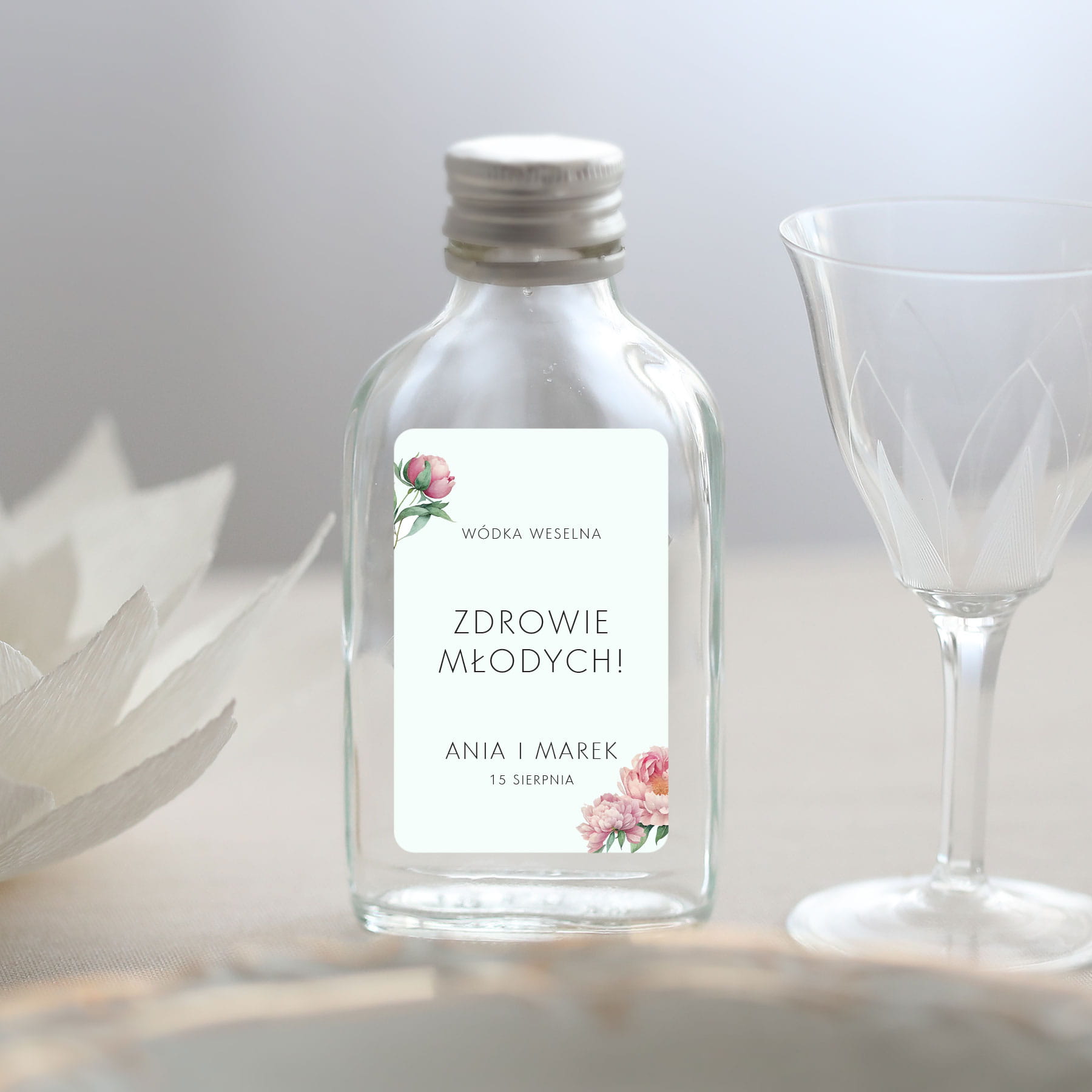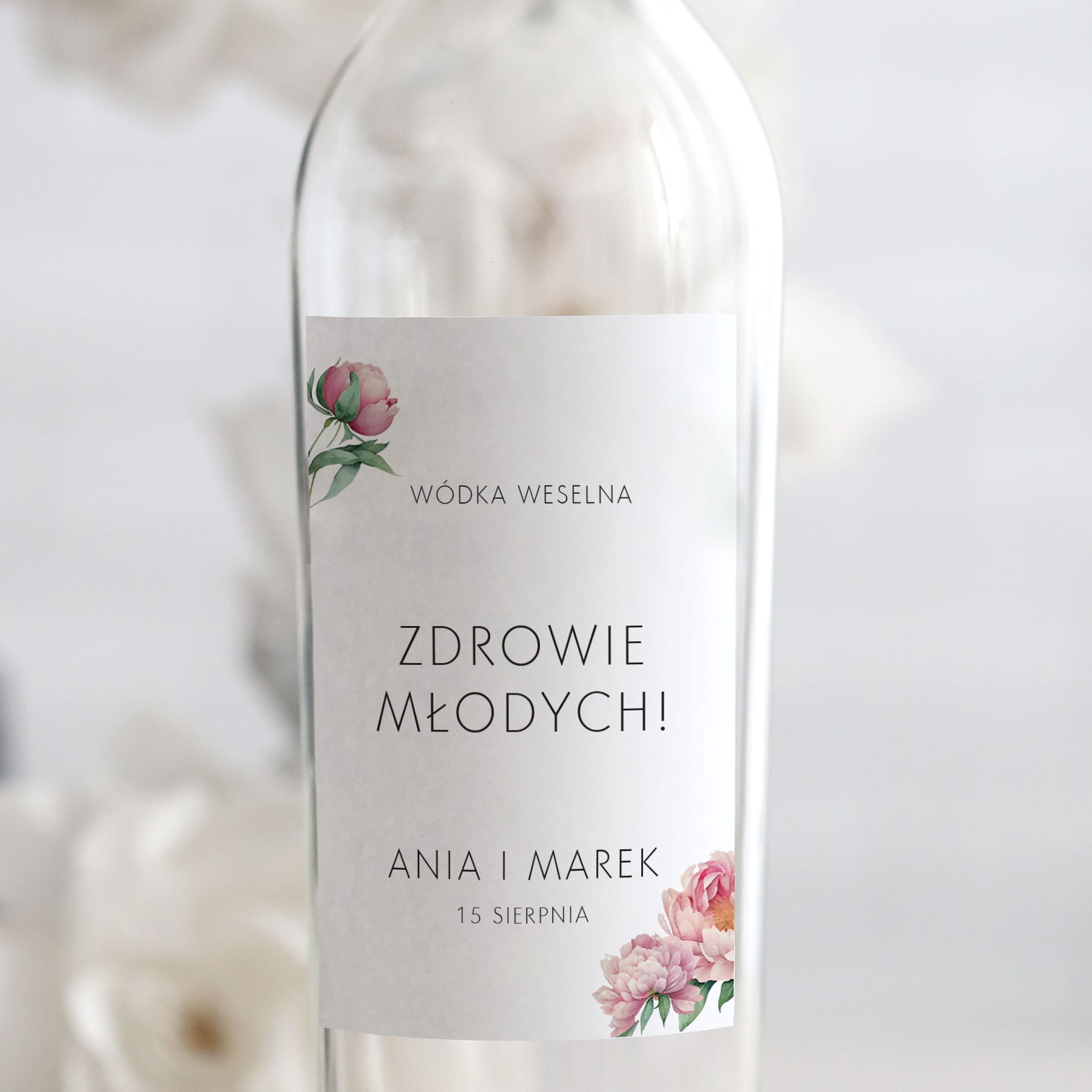 Naklejki na butelki z piwonią