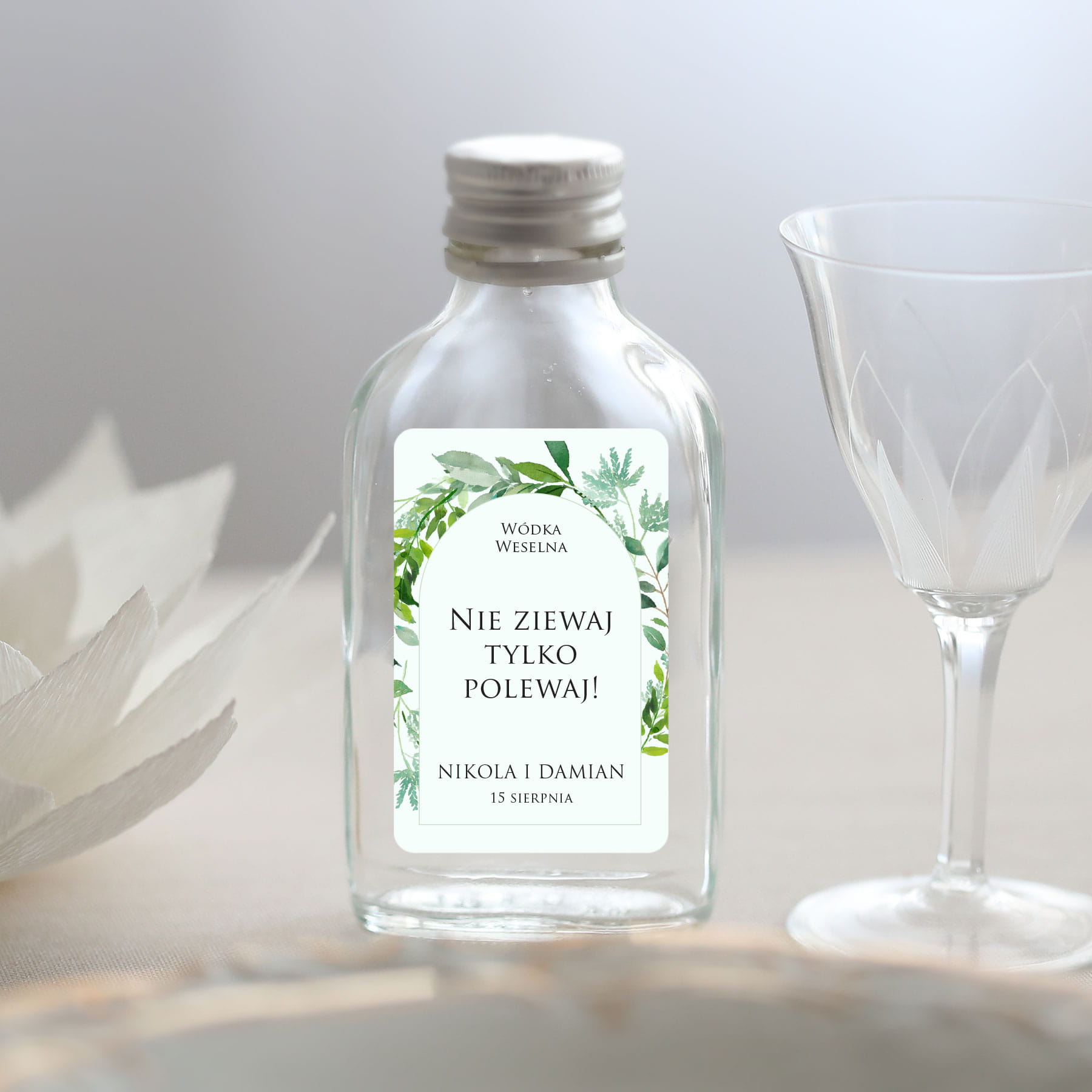 Naklejki na butelki z zielonymi listkami