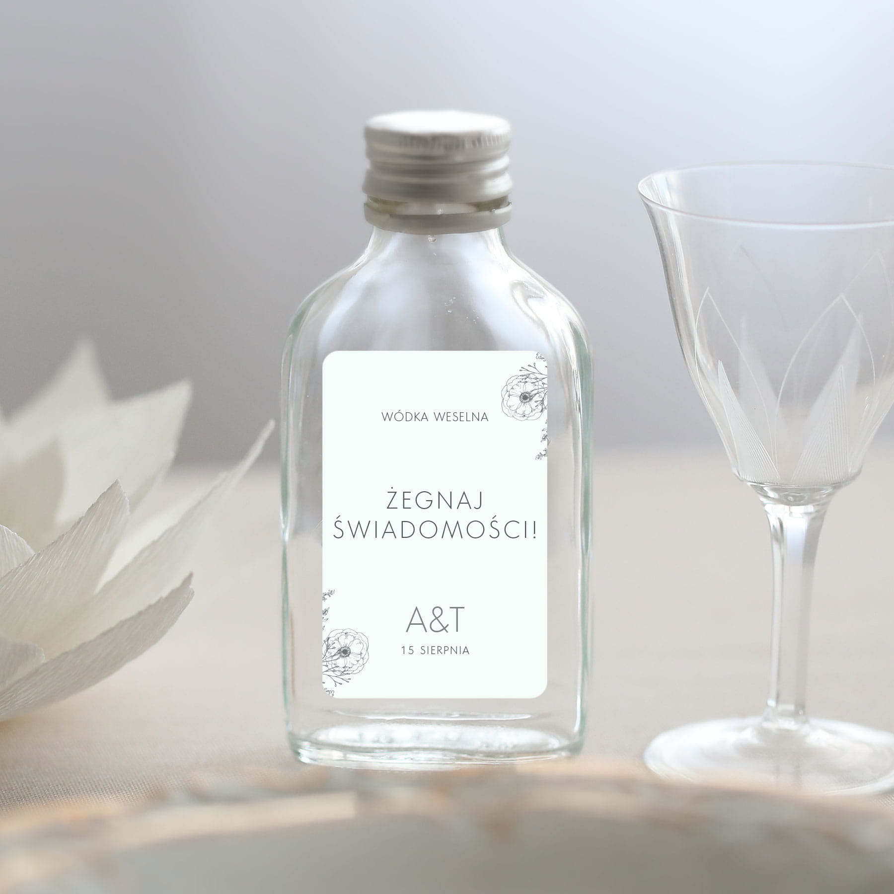 Naklejki na butelki z subtelnymi kwiatami