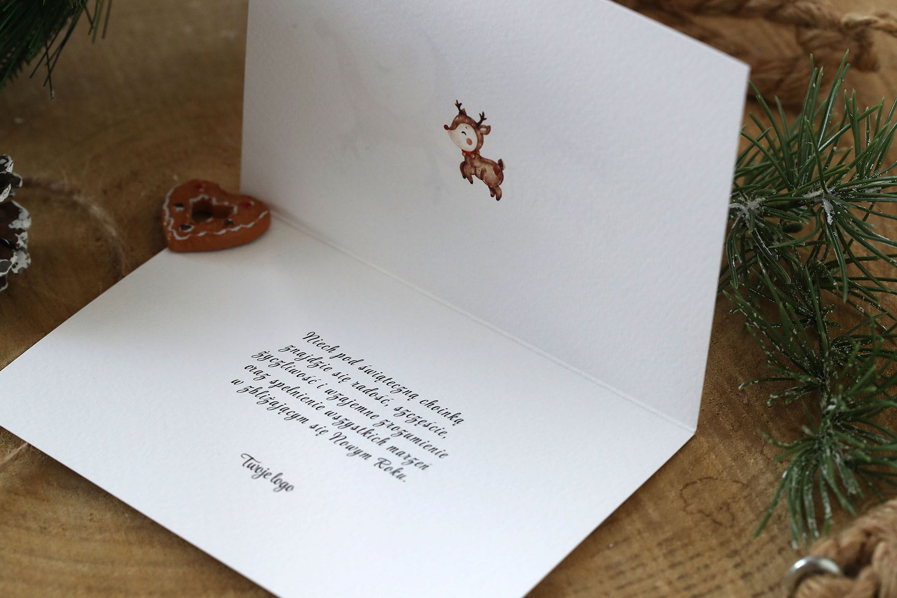 Wesołe kartki firmowe na Boże Narodzenie z reniferem - 10x15 cm