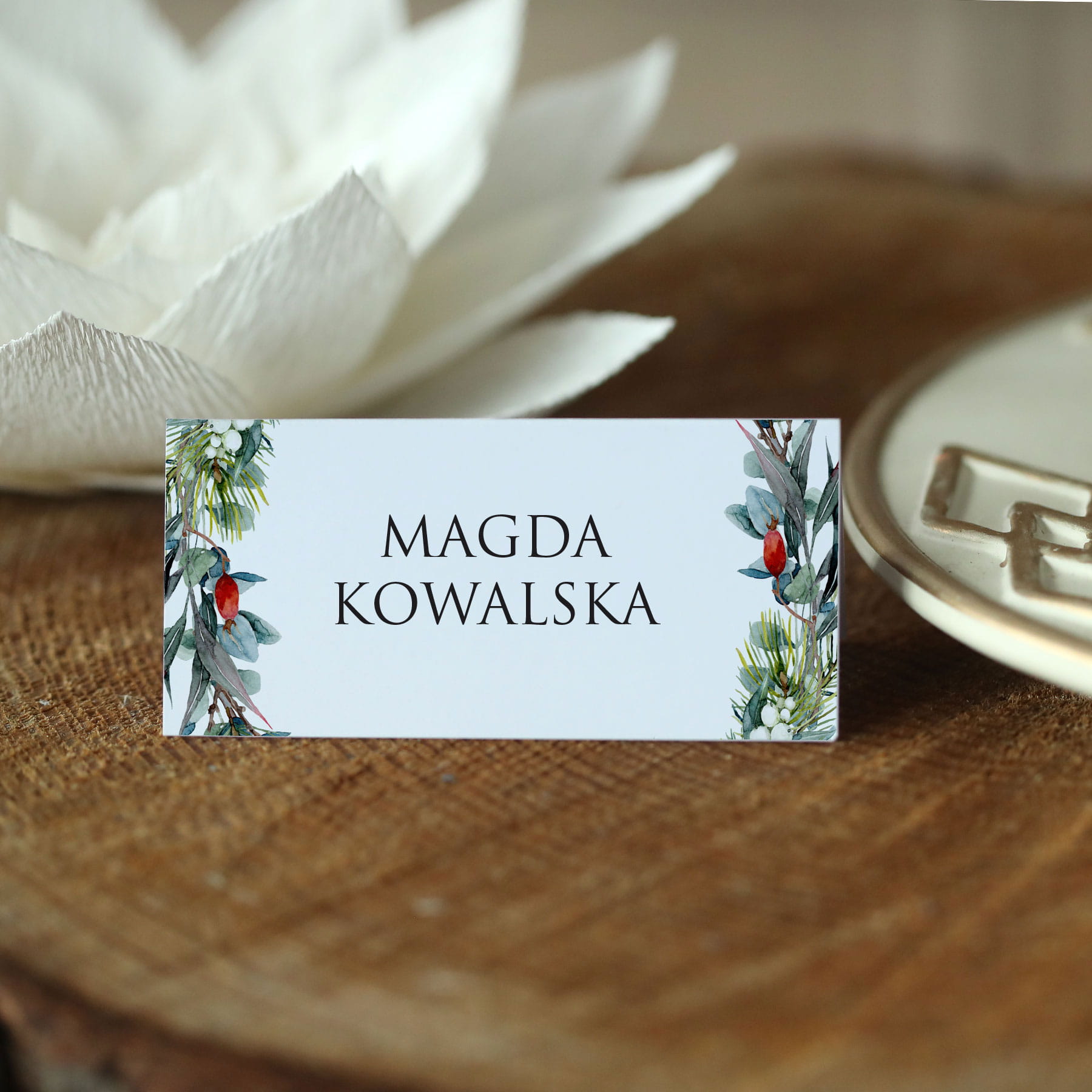 Winietki świąteczne na imprezy firmowe z delikatnym wieńcem