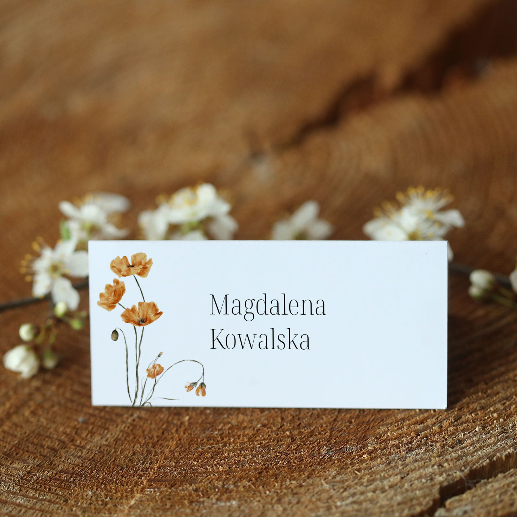Piękne winietki na Twój stół akwarelowymi motywami kwiatowymi w ciepłych, jesiennych odcieniach oraz minimalistyczną, nowoczesną typografią.