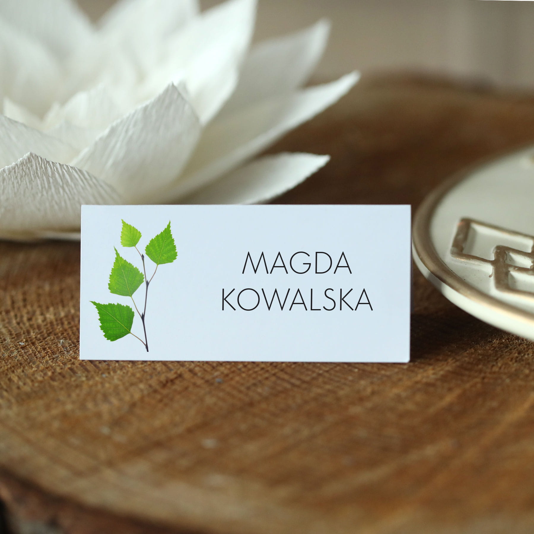 Piękne winietki z liściem brzozy na Twój stół