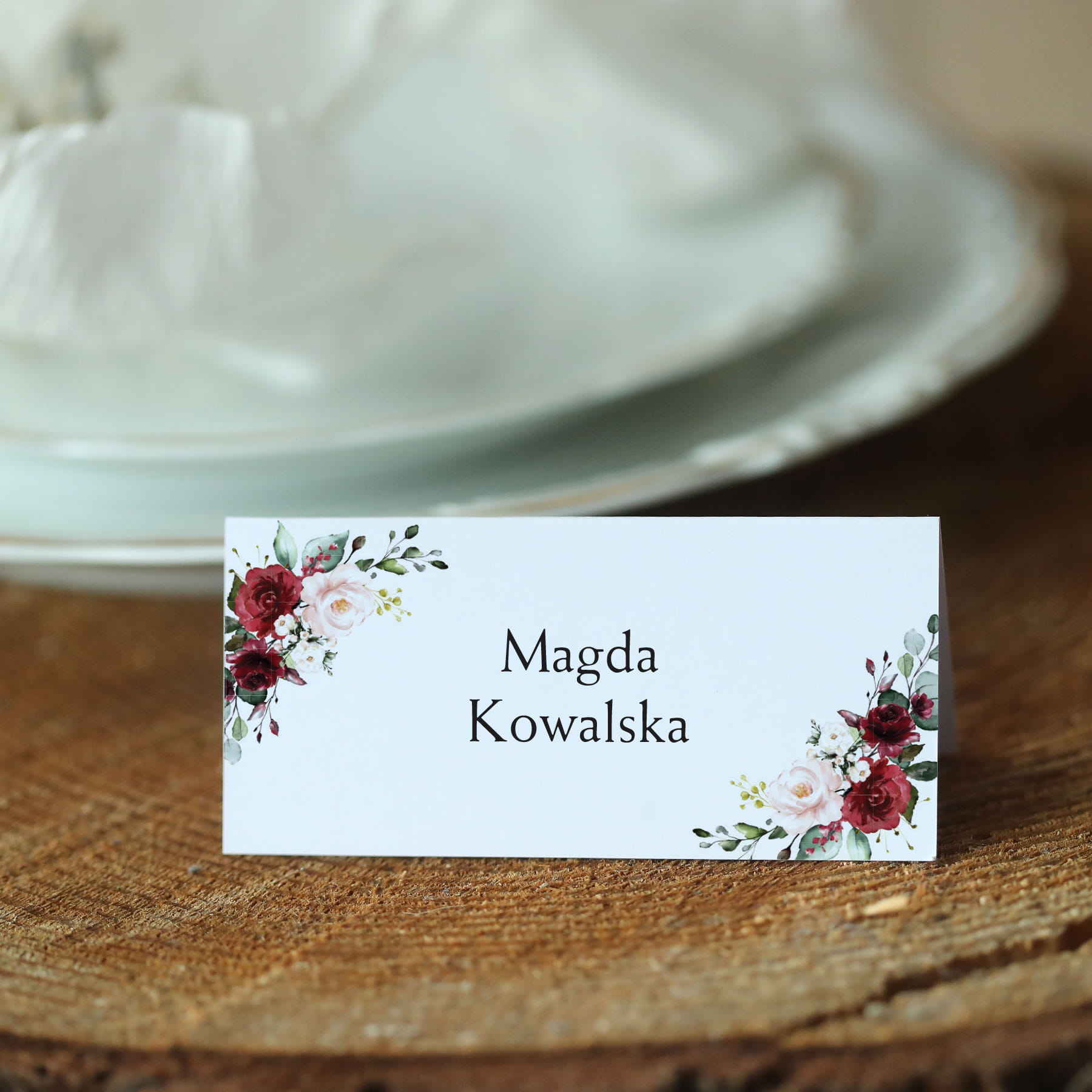 Winietki z motywem bordowych kwiatów