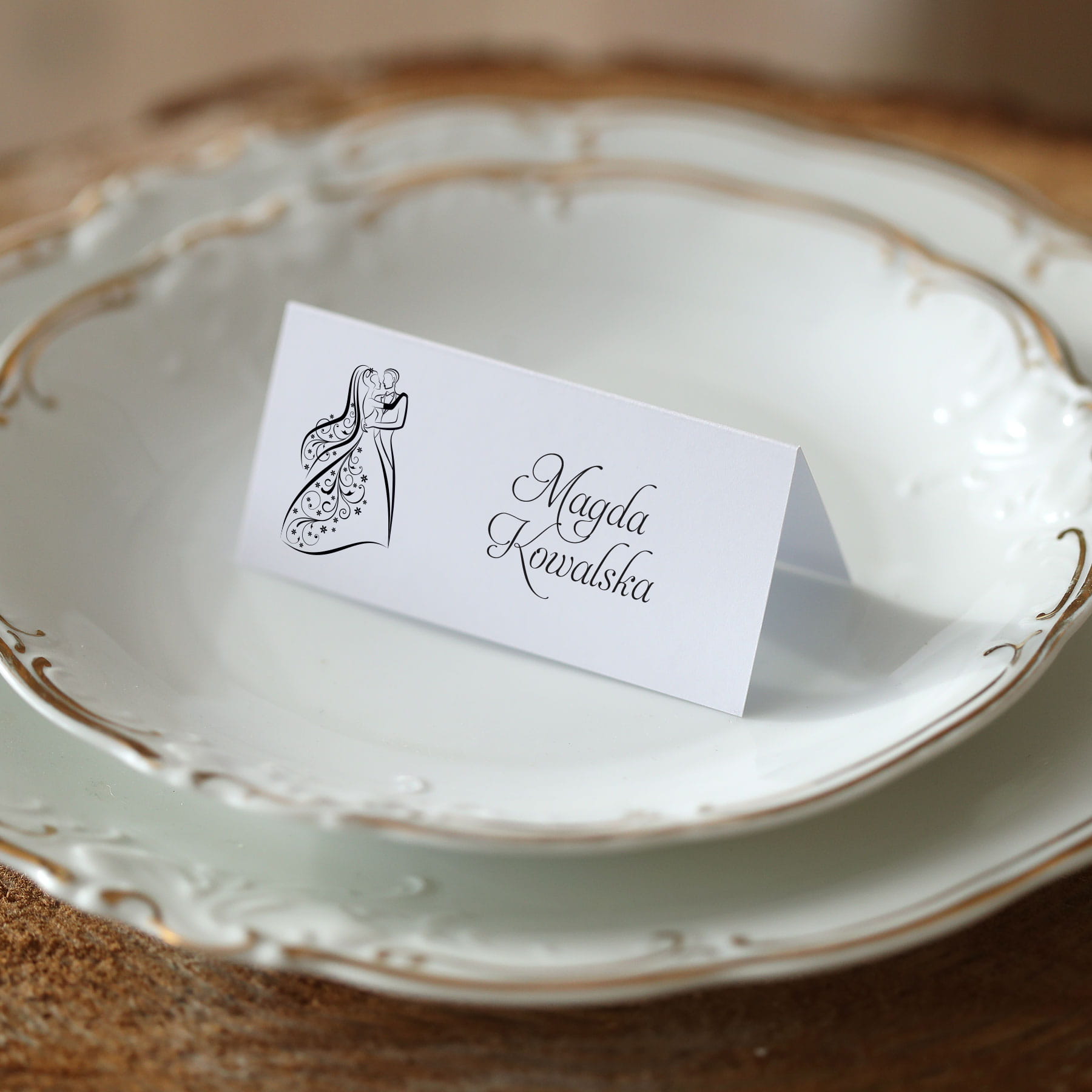 Piękne winietki z ozdobnym obrazkiem pary młodej na Twój stół
