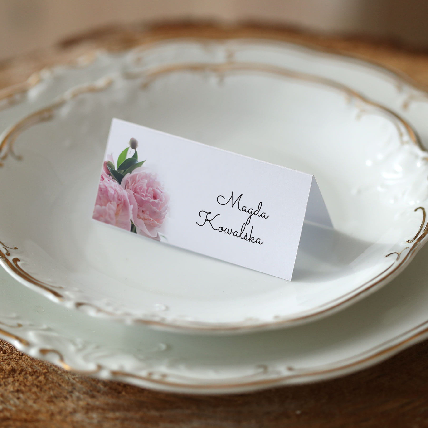Piękne winietki z kwiatami różowych Piwonii na Twój stół
