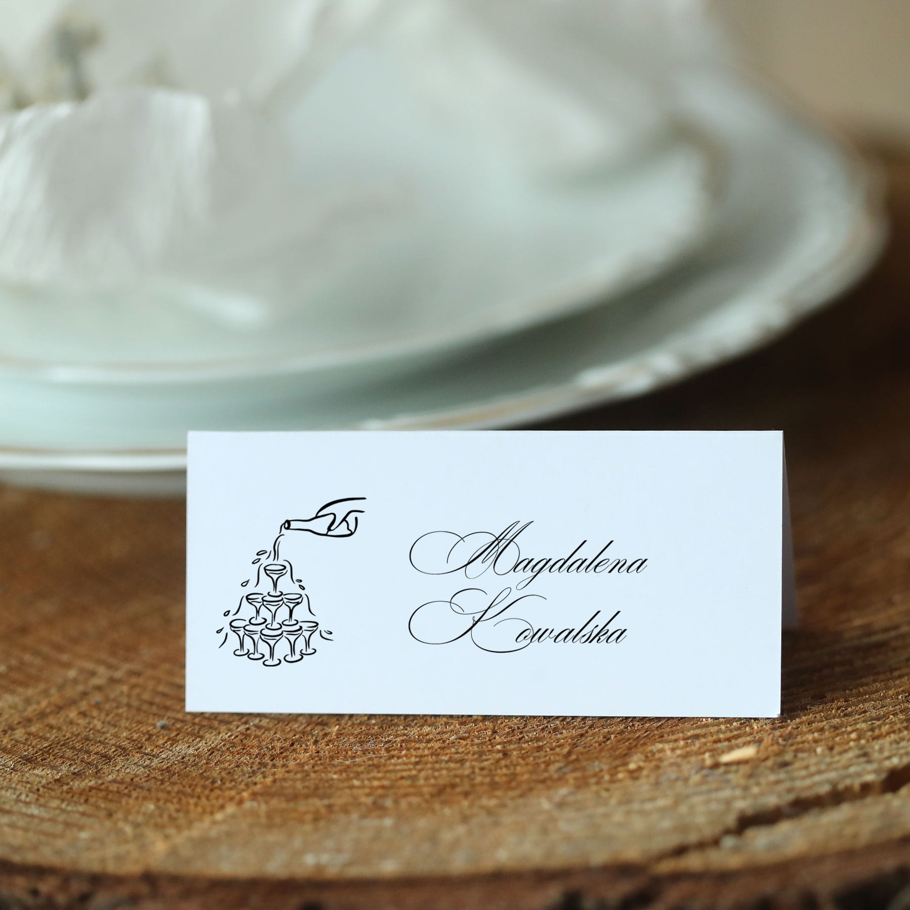 Piękne winietki na Twój stół z czarno-białymi grafikami nawiązującymi do przyjęcia weselnego.