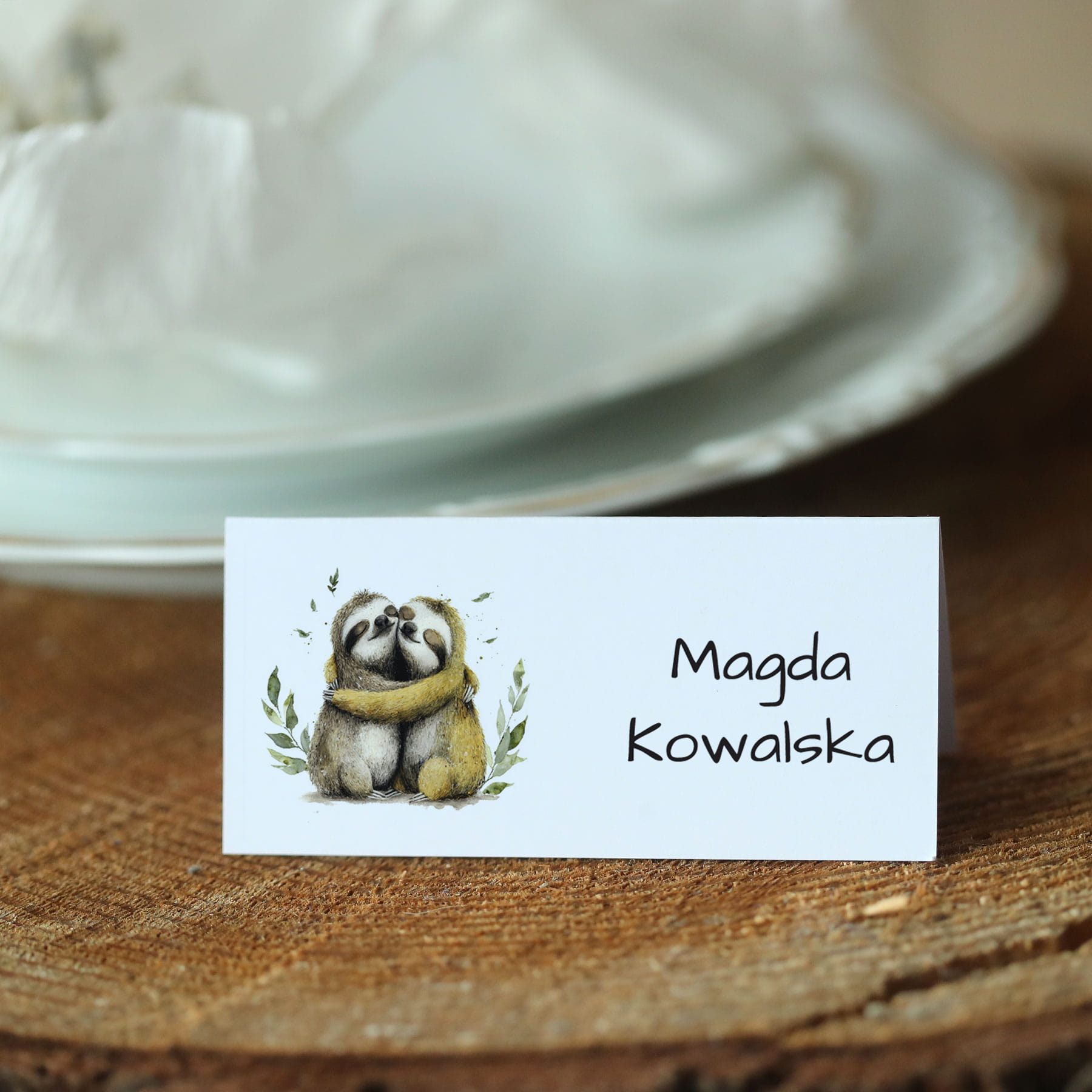 Piękne winietki na Twój stół z zakochanymi leniwcami.